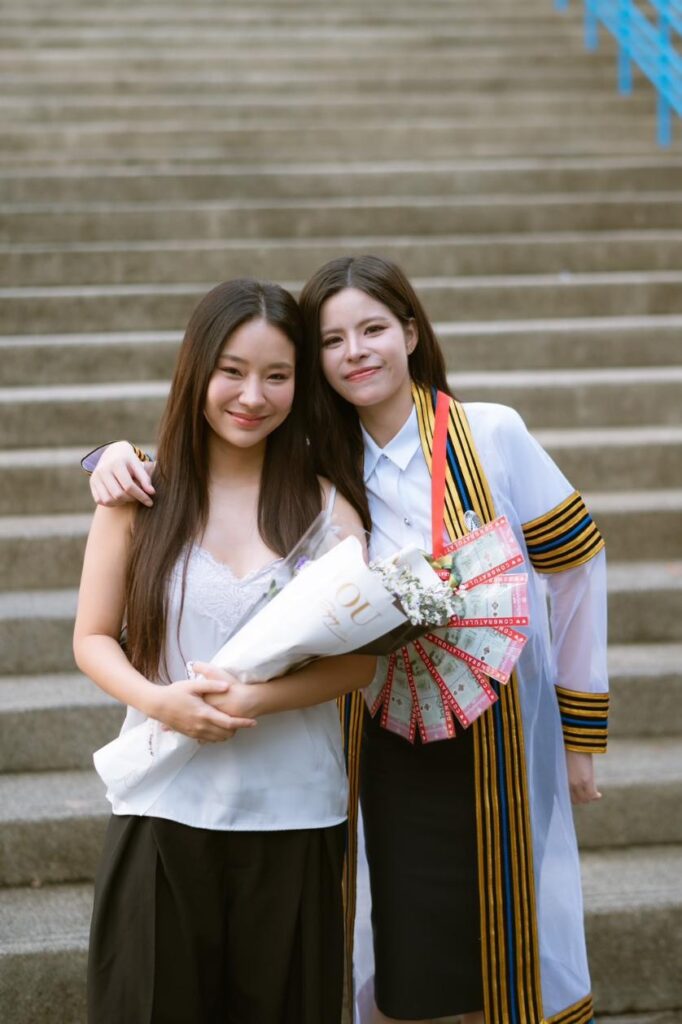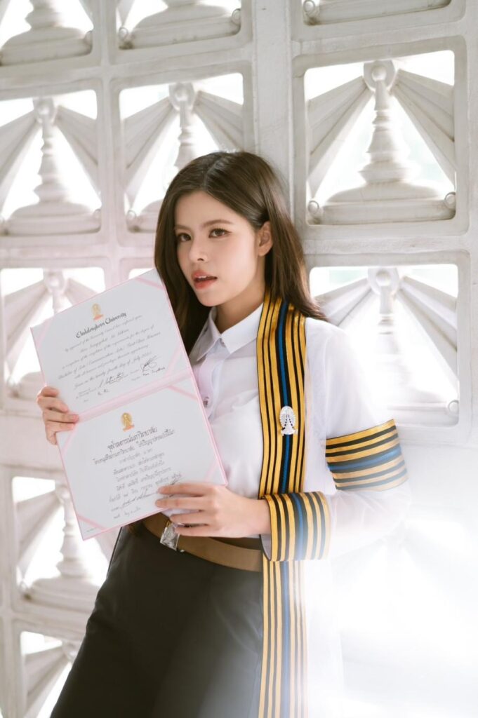 ครบเครื่องแบบไม่มีอะไรมาต้านได้! บัณฑิตใหม่ป้ายแดงสวยและเก่งมาก พระเมะคุณคลู”เฟ กัญญาพัชร ณ นคร” นักแสดงGLกำลังมาแรง สังกัดค่าย IDOLFACTORY ที่กำลังมีผลงานสุดปังกระแสแจ่มหวานน้ำตาลเรียกพี่ ซีรีส์ “รักปากแข็ง Somewhere Somehow” ออนแอร์อยู่ในขณะนี้ ล่าสุดเพิ่งเข้ารับพระราชทานปริญญาบัตร คว้าเกียรตินิยมอันดับ 1 คณะนิเทศศาสตร์ สาขาการแสดง จุฬาลงกรณ์มหาวิทยาลัย โดยมีเหล่าแฟนๆสายซัพพอร์ตทั้งไทยและอินเตอร์ ปักหลักรวมพลร่วมแสดงความยินดีกันอย่างอบอุ่น พร้อมด้วยบะบี๋คนสวย “เมษ์ ญดา” ก็ไม่พลาดหอบดอกไม้แทนใจมาร่วมแสดงความยินดี กับที่เด็ดของขวัญสุดพิเศษต่างหูแทนใจที่ขอส่งมอบให้กับพาร์ทเนอร์คนเก่งในวันสำคัญครั้งนี้ด้วย
