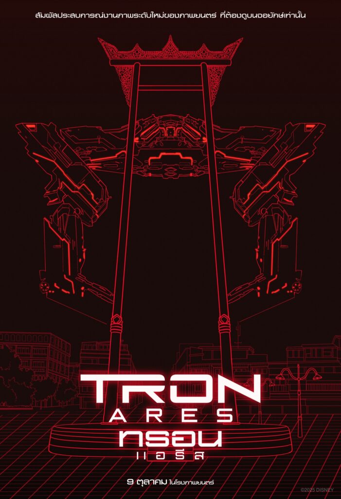 และเพื่อชวนแฟน ๆ ชาวไทยให้เตรียมตัวไปพบกับความมันของสงครามสุดล้ำระหว่างมนุษย์กับเอไออัจฉริยะ ล่าสุด “Tron: Ares ทรอน แอรีส” บุกมาเยือนถึงกรุงเทพฯ ควบไลต์ไซเคิลไปปักหมุดแลนด์มาร์กใจกลางเมือง เปลี่ยนสนามหลวง เสาชิงช้า และมิวเซียมสยาม ให้เป็นกริดแห่งโลกดิจิทัลด้วยแสงสีแดงสุดตระการตา ผ่านโปสเตอร์พิเศษโดย Smashhh Studio ก่อนเข้าฉายจริงในโรงภาพยนตร์ทั่วประเทศ วันพฤหัสบดีที่ 9 ตุลาคมนี้