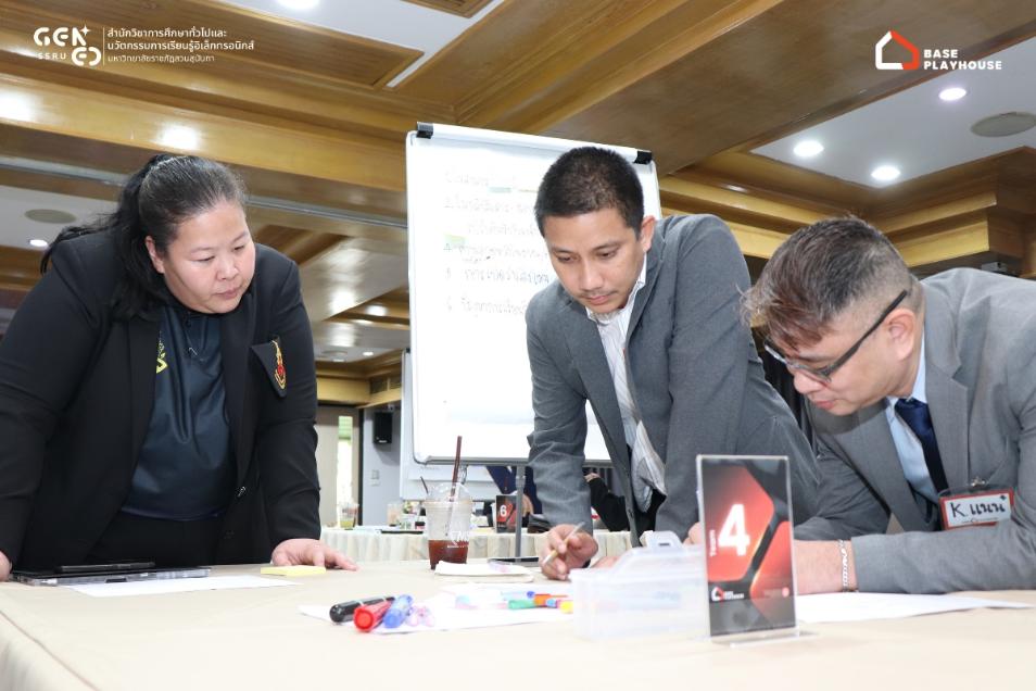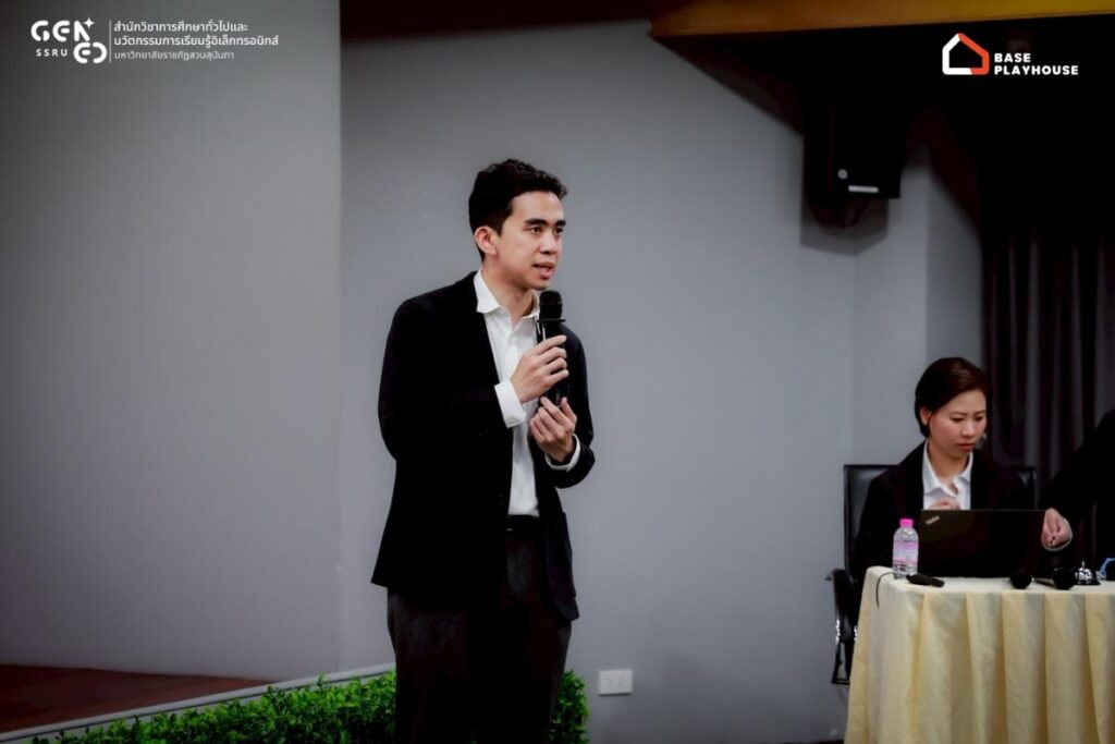ผศ.ดร.มาธุสร แข็งขัน ผู้อำนวยการสำนักวิชาการศึกษาทั่วไปและนวัตกรรมการเรียนรู้อิเล็กทรอนิกส์ มหาวิทยาลัยราชภัฏสวนสุนันทา (Gen Ed SSRU) กล่าวเปิดงานกิจกรรมช่วงบ่าย สำหรับผู้บริหารมหาวิทยาลัยราชภัฎสวนสุนันทาว่า “มหาวิทยาลัยราชภัฏสวนสุนันทาให้ความสำคัญอย่างยิ่งต่อการพัฒนาคุณภาพผู้เรียนและการผลิตบัณฑิตที่ตอบโจทย์สังคมและตลาดแรงงาน ความร่วมมือกับ BASE Playhouse ในการใช้ SEEN Assessment จะช่วยให้เรามีข้อมูลศักยภาพเชิงประจักษ์ของนักศึกษาอย่างชัดเจน และสามารถวางแผนการเรียนการสอน การแนะแนว และการพัฒนาหลักสูตรได้อย่างเป็นระบบ มหาวิทยาลัยมุ่งมั่นที่จะใช้ข้อมูลเชิงประจักษ์เหล่านี้เพื่อสร้างนักศึกษาที่มีความพร้อมทั้งด้านความรู้ ทักษะ และคุณลักษณะสำหรับโลกการทำงานจริง”