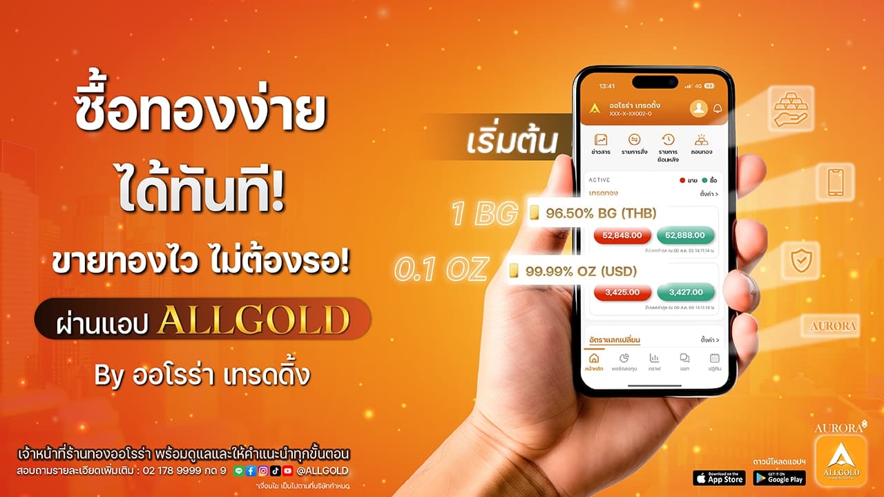 บริษัท ออโรร่า เทรดดิ้ง จำกัด ผู้ประกอบธุรกิจจำหน่ายทองคำออนไลน์ในประเทศไทย เดินหน้าขยายช่องทางการให้บริการสู่โลกดิจิทัล ด้วยการเปิดตัวแอปพลิเคชัน “ALLGOLD” แพลตฟอร์ม ซื้อ-ขาย-ถอน ทองคำ 96.5% และ 99.99% ในรูปแบบออนไลน์แบบครบวงจร ตอบสนองพฤติกรรมผู้บริโภคยุคดิจิทัล ที่ต้องการความสะดวกสบายในการลงทุนทองคำโดยไม่ต้องเดินทางมาหน้าร้าน