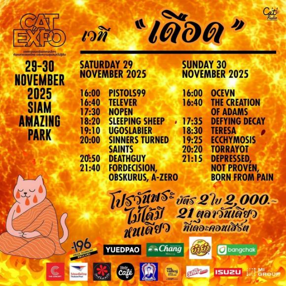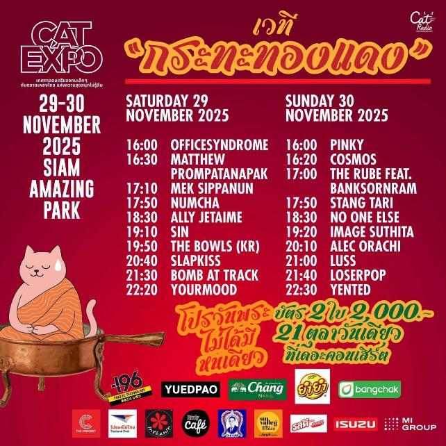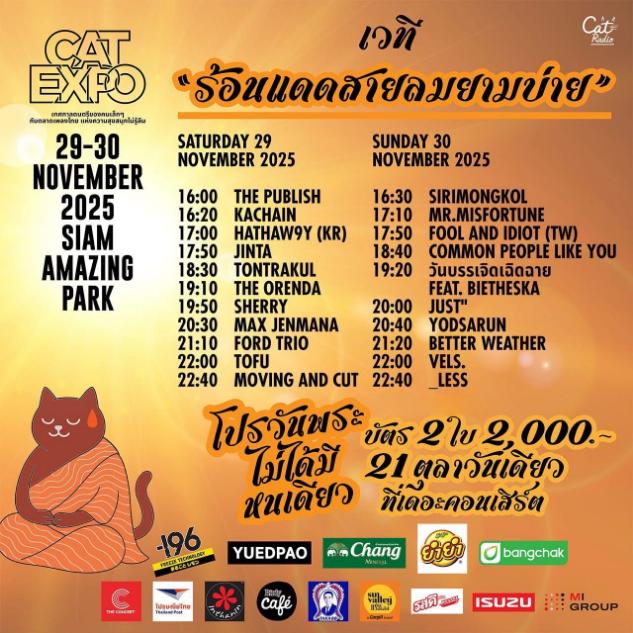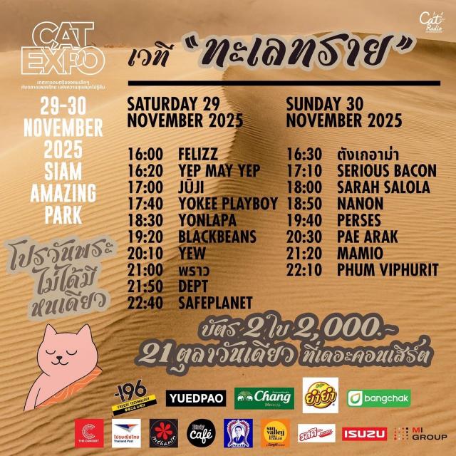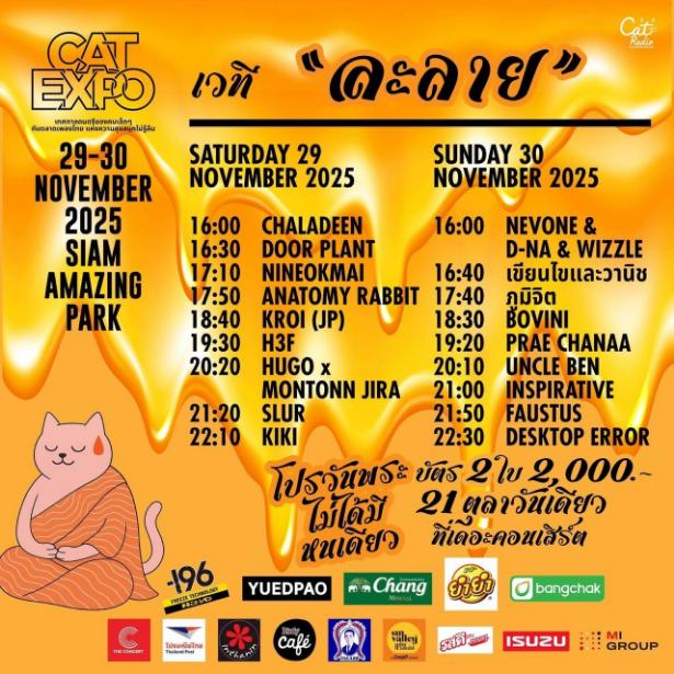 “CAT EXPO 12” เทศกาลดนตรีของคนเล็กๆ กับตลาดเพลงไทยแห่งความสุข สนุกไม่รู้ลืม เรามาลุ้นไปด้วยกันว่าปีนี้จะต้น “ฝน” ได้อีกปีหรือไม่ วันที่ 29-30 พฤศจิกายน 2568 ที่สยามอะเมซิ่งพาร์ค(สวนสยาม)