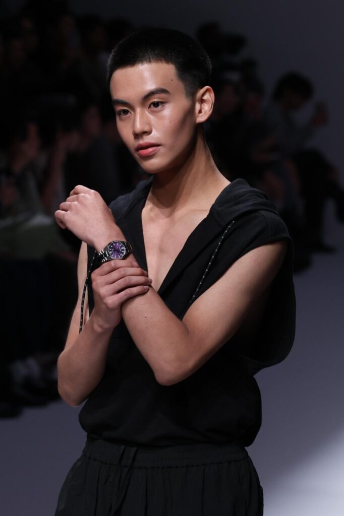 นอกจากรันเวย์ลุคสุดตระการตา หนุ่ม อเล็กซ์-อเล็กซานเดอร์ ยังมีไอเทมลับอัปสไตล์ให้ดูเท่และคลาสสิกขึ้นไปอีกระดับด้วย CITIZEN TSUYOSA 37 mm “Time Slip” Limited Edition ที่มีจำนวนจำกัดเพียง 8,000 เรือนทั่วโลก นาฬิกาที่สุดแห่งความคลาสสิกเหนือกาลเวลา ที่มีขนาดกระทัดรัด ด้วยตัวเรือน 37 มม. เหมาะกับทุกลุคทุกสไตล์ หนุ่ม อเล็กซ์ ปรากฏตัวในลุคสุดเท่ ด้วยเสื้อแขนกุดสีดำแมทช์กับกางเกงสีกรมลายริ้ว เสริมลุคให้สมบูรณ์แบบด้วยการทับเสื้อกั๊กสีดำสุดมินิมอล จาก PAINKILLER Atelier