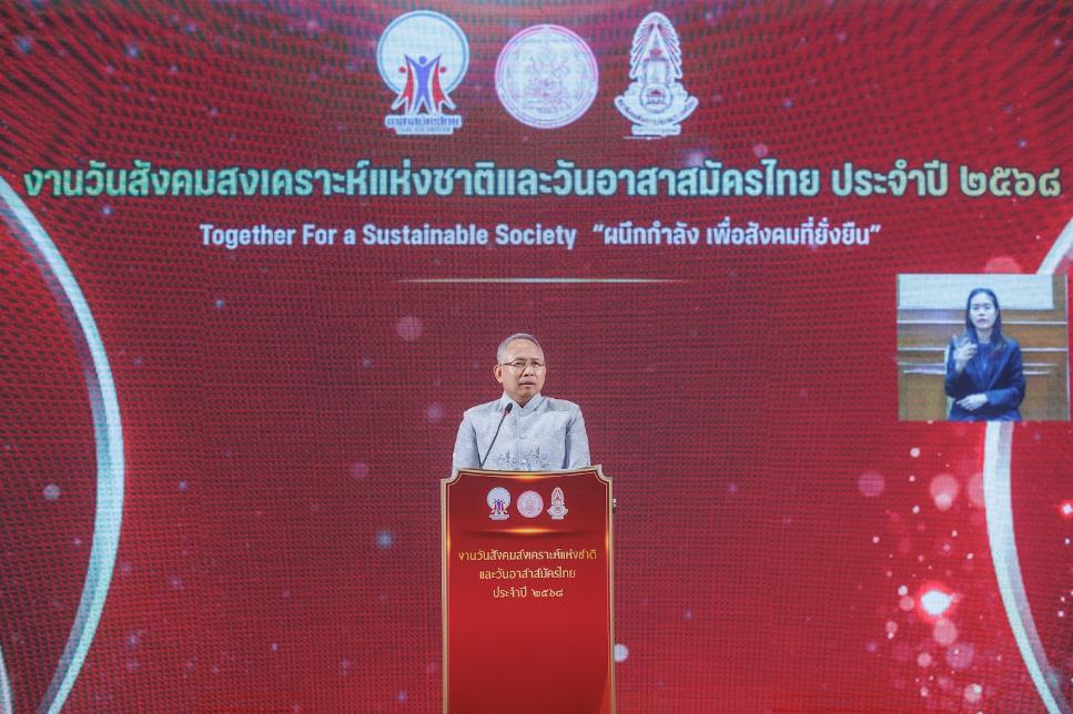นายอัครา พรหมเผ่า รัฐมนตรีว่าการกระทรวงการพัฒนาสังคมและความมั่นคงของมนุษย์ (รมว.พม.) กล่าวว่าคณะรัฐมนตรีมีมติเมื่อวันที่ 12 พฤศจิกายน 2528 กำหนดให้วันที่ 21 ตุลาคมของทุกปี ซึ่งเป็นวันคล้ายวันพระราชสมภพสมเด็จพระศรีนครินทราบรมราชชนนี เป็นวันสังคมสงเคราะห์แห่งชาติ ต่อมาคณะรัฐมนตรีมีมติเมื่อวันที่ 19 ธันวาคม 2543 เห็นชอบให้วันที่ 21 ตุลาคม ของทุกปี เป็นวันอาสาสมัครไทย กระทรวงการพัฒนาสังคมและความมั่นคงของมนุษย์ (พม.) ร่วมกับสภาสังคมสงเคราะห์แห่งประเทศไทย ในพระบรมราชูปถัมภ์ จัดงานวันสังคมสงเคราะห์แห่งชาติและวันอาสาสมัครไทยเป็นประจำทุกปี โดยร่วมกันพิจารณาคัดเลือกอาสาสมัครดีเด่น และองค์การที่มีกิจกรรมทางสังคมดีเด่น ของแต่ละปี ซึ่งปี 2568