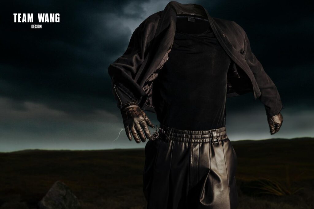 คอลเลกชัน ACCEPTANCE เปิดตัวลุคชุดขาวล้วนครั้งแรกของแบรนด์ ประกอบด้วย แจ็กเก็ตยีนส์และกางเกงยีนส์ ที่สื่อถึง ช่วงเวลาแห่งการโอบรับด้านมืดของตนเอง สัญลักษณ์ของการตระหนักว่า เงามืดไม่ได้หมายถึงการไร้ซึ่งแสงสว่าง แต่คือการเข้าใจว่าเงานั้นมีอยู่ได้ก็เพราะแสง ความบริสุทธิ์ของสีขาว ตัดกับไลน์อัปเสื้อผ้าสีดำล้วน เกิดเป็นภาษาภาพที่สะท้อนถึง พลัง และความลึกซึ้งที่อยู่ร่วมกันได้อย่างกลมกลืน และยังนำเสนอในโทนสีเอกลักษณ์ของ TEAM WANG design คือ สีดำและสีขาว มีไอเท็มหลักอย่าง เสื้อสูทคอจีน , เสื้อแจ็กเก็ตหนัง และ เสื้อแจ็กเก็ตยีนส์ ที่ผลิตจากวัสดุระดับพรีเมียมอย่าง หนังแกะ และ เทนเซล (Tencel) เติมดีเทลด้วยอะไหล่โลหะลายด่าง แผ่นโลหะสลักโลโก้ “TEAM WANG DESIGN” และขอบผ้าดิบขรุขระ สะท้อนความสมดุลระหว่างความแข็งแรงและการเคลื่อนไหวอย่างอิสระ
