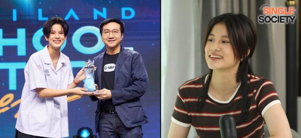 จากการประกวด หนูก็พิสูจน์ไประดับนึง ก่อนมาประกวดจนหลังประกวด คนก็จะมีบอกว่า คนนี้คือลูกดารา พ่อเป็นดารานะ แต่ตอนนี้ อ้าว พ่อเป็นดาราเหรอ เพิ่งรู้ หนูก็รู้สึกว่าเราภูมิใจในตัวเองมานิดนึงว่า มีคนรู้จักเราก่อนพ่อ (หัวเราะ)