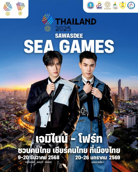 เพื่อสร้างสีสันและเข้าถึงกลุ่มแฟนคลับทั่วประเทศ แคมเปญ “Sawasdee Sea Games 2025″ ได้ดึงศิลปินระดับแนวหน้าที่มีฐานแฟนคลับอย่างหนาแน่นมาร่วมเป็นกระบอกเสียง นำทีมโดยนักแสดงที่สร้างปรากฏการณ์กับซีรีส์ที่โด่งดังระดับโลกสุดปังจากค่าย GMMTV อย่าง เจมีไนน์-โฟร์ท, ปอนด์-ภูวินทร์, น้ำตาล-ฟิล์ม, สกาย-นานิ และบอยแบนด์สุดฮอต LYKN และตอกย้ำความปังกับคู่ศิลปินขวัญใจมหาชนจากช่อง One31 อย่าง ต้าห์อู๋-ออฟโรด ซึ่งทุกคนพร้อมใจกันมาส่งมอบพลังความเป็นเจ้าบ้านสุดว้าว พร้อมชวนคนไทยทุกคนมาเป็นกำลังใจสำคัญให้นักกีฬาไทยของเราถึงขอบสนามในเมืองไทย