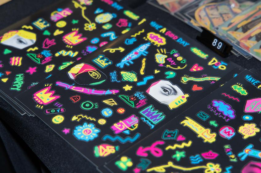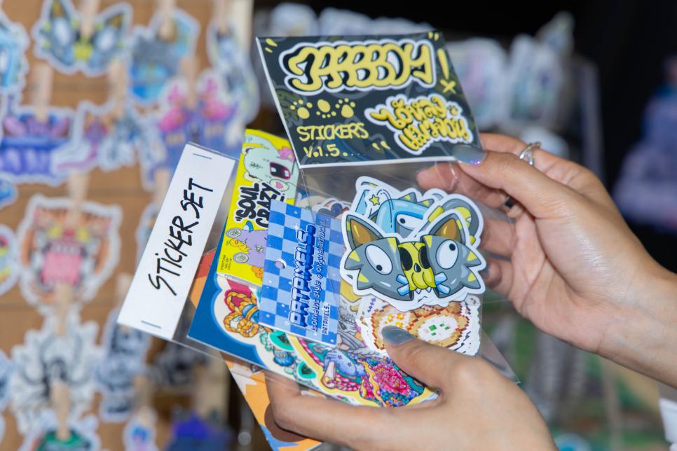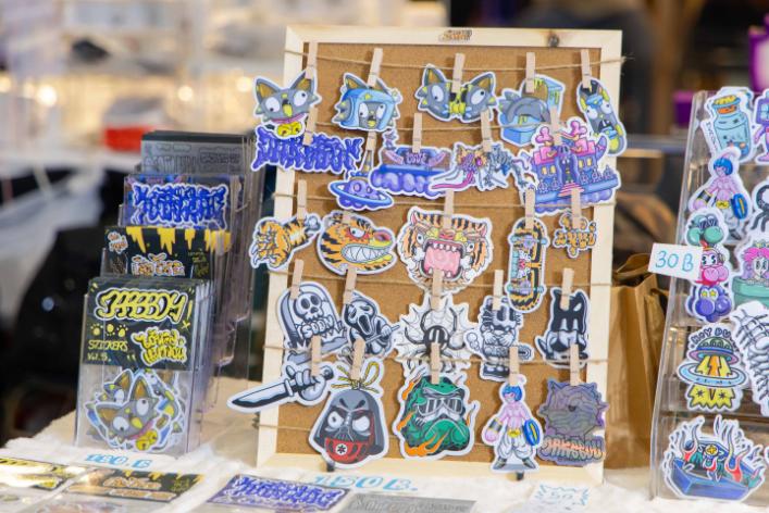 งานนี้พบกับ Exhibition “ONE OF ONE STICKER” นิทรรศการศิลปะสติ๊กเกอร์หนึ่งเดียวในโลกจากศิลปิน ทุกชิ้นออกแบบพิเศษ ไม่ซ้ำใคร จัดแสดงบนกรอบอะคริลิกใสจากการรวมพลังความคิดสร้างสรรค์จากศิลปินรุ่นใหม่ อาทิ Turn Kanama, Jaogon, Nicejoy Blueboo, Ngaew Ngaew, The Jum, Haihaitoon, Manow, ByBamBam, Captain Mozmo, Jinjinxmsns, MSV, Chorkung, Meimo Mo, Happy Heart, Fiveaps และอีกมากมาย ถ่ายทอดผ่านสติกเกอร์ที่กลายเป็น “งานศิลปะชิ้นจริง”