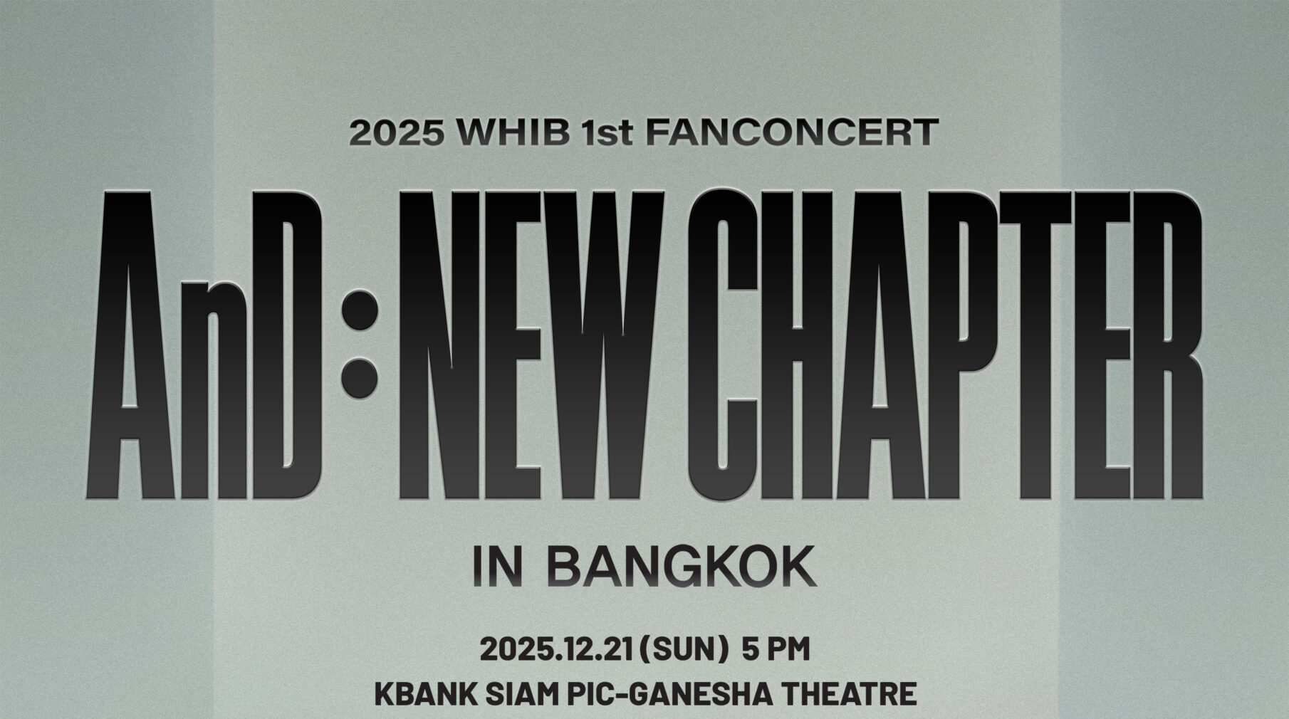 เริศเลยล่ะ!! เวลาคอมพลีตของเหล่า AnD ชาวไทย (AnD ชื่อแฟนคลับอย่างเป็นทางการ) มาถึงแล้ว หลังบอยกรุ๊ป สุดฮอต วง WHIB ได้แก่ คิมจุนมิน (Kim Junmin), ฮาซึง (Haseung), จินบอม (Jinbeom), ยูกอน (Ugeon), อีจอง (Leejeong), แจฮา (Jaeha), วอนจุน (Wonjun) สร้างปรากฏการณ์บัตรแฟนคอน Sold Out ที่ประเทศเกาหลีใต้อย่างรวดเร็ว และประกาศปักหมุดไปมอบความสนุกให้แฟนคลับอีกหลายประเทศ และประเทศที่หนุ่มๆ WHIB มีความทรงจำอยู่มากมาย นั้นคือ ‘ไทยแลนด์’!! โดยผู้จัด Looplabel และ พาร์ทเนอร์บริษัท ทริปเปิล เช็ค จำกัด รับเรื่องอย่างเร็วเตรียมเสิร์ฟความฟินและความใกล้ชิดให้แฟนๆ กับงาน “WHIB 1st FANCON [AnD : New Chapter] In Bangkok” ในวันอาทิตย์ที่ 21 ธันวาคม 2568 ตั้งแต่ เวลา 17.00 น. เป็นต้นไป ณ โรงละครเคแบงก์สยามพิฆเนศ