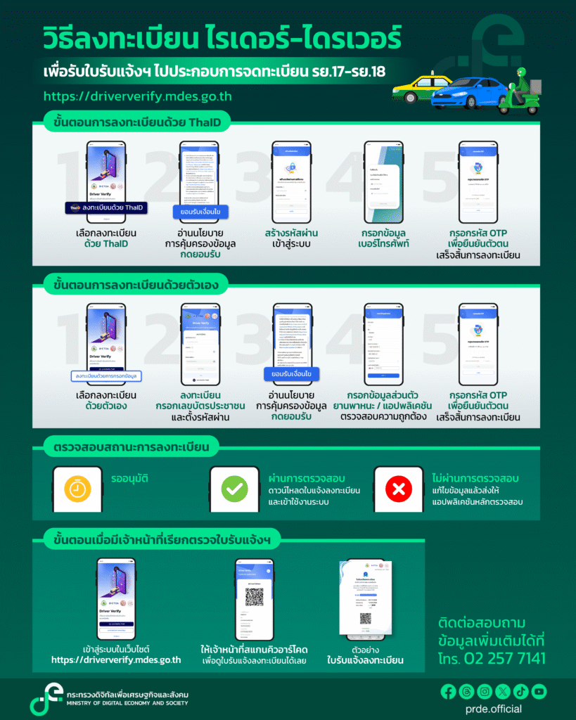 - เปิดให้ลงทะเบียนแสดงเจตจำนงผ่านเว็บไซต์ https://driververify.mdes.go.th (ล็อกอินผ่าน Thai ID) ไปจนถึงวันที่ 28 ก.พ. 2569