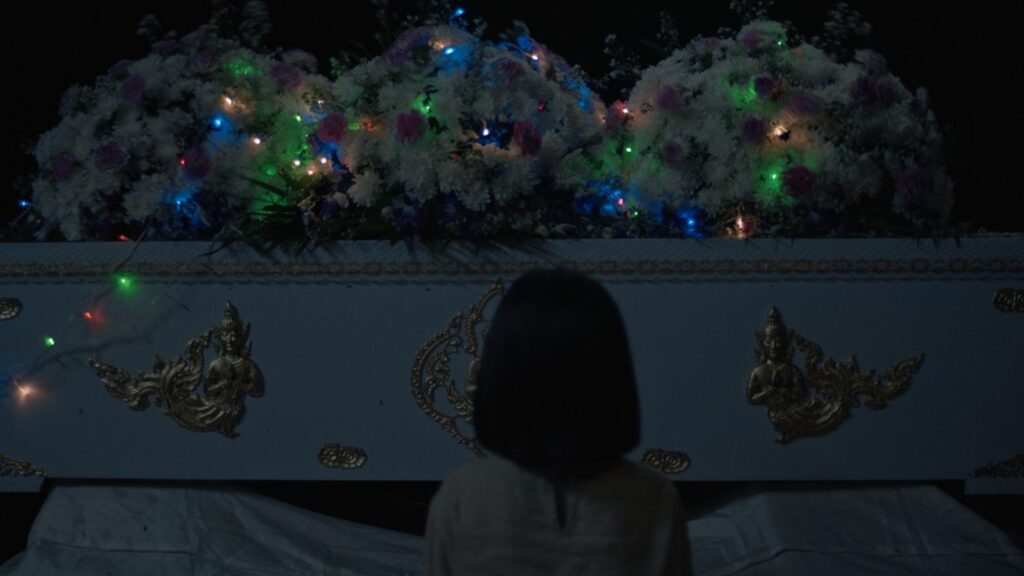 ทุกอย่างยิ่งน่าขนลุกเมื่อค่ำคืนที่ “จ่อย” เฝ้าศพย่าถิน เขาได้ยินเสียงเคาะโลง ก่อนเห็น “จั่น” น้องสาวที่พูดไม่ได้มาตลอดชีวิต พูดด้วยน้ำเสียงแปลกประหลาดว่า “ย่าสิเอาเฮาไปอยู่นำติ” … ประโยคที่เปลี่ยนทุกอย่าง!