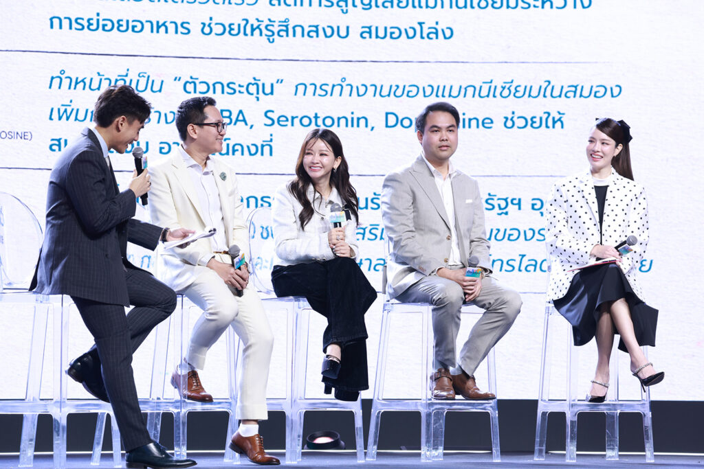 งานเปิดตัวสุดยิ่งใหญ่จัดขึ้นในงาน “Cognitive Longevity: The Science Behind” โดยได้รับเกียรติจาก ดร.วาสนา อินทะแสง Founder, BioActive Thailand คุณจี๋ – สุทธิรักษ์ ทรัพย์วิจิตร (Co-founder, BioActive Thailand) และ Dr.Rafea Naffa, R&D Director at Threotech LLC For Magtein รวมถึงผู้เชี่ยวชาญด้านเวชศาสตร์ชะลอวัยและฟื้นฟูสุขภาพ “ผศ.นพ. มาศ ไม้ประเสริฐ” และ อาจารย์ ผศ.ดร. เอกราช บำรุงพืชน์ นอกจากนี้ยังมี เภสัชกร ณัฐชาศิษฐ์ พงศ์เขตกิจ ผู้เชี่ยวชาญด้านด้านการพัฒนาผลิตภัณฑ์ด้านสุขภาพและความงามมาร่วมแบ่งปันประสบการณ์ตรงในการ “จัดการความเครียด” ในชีวิตจริงที่ต้องเผชิญกับแรงกดดันสูง