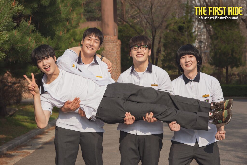 แทจอง (คัง ฮานึล) “หนุ่มเก็บทรง” – ผู้ชอบความสมบูรณ์แบบ ที่ครั้งหนึ่งเคยสอบเข้ามหาวิทยาลัยได้อันดับ 1 ของประเทศ และมีนิสัยจริงจังสุดๆกับทุกสิ่งที่ตั้งใจทำ โดจิน (คิม ยองกวัง) “หนุ่มอารมณ์ดี” ที่ใช้ชีวิตแบบไม่มีเบรก เต็มไปด้วยเสน่ห์แบบซื่อๆ แต่ชวนวายป่วง ยอนมิน (ชา อึนอู) “หนุ่มหล่อ” ผู้ใฝ่ฝันอยากเป็นดีเจระดับโลก แต่กลับไม่รู้ตัวเลยว่าตัวเองดูดีขนาดไหน กึมบก (คัง ยองซอก) “หนุ่มผู้นอนลืมตา” ที่เกลียดการเรียนจนถึงขั้นฝึกนอนลืมตาได้สำเร็จ และสุดท้าย อ๊กชิม (ฮัน ซอนฮวา) “สาวสวยที่ใครๆก็รัก” มาพร้อมพลังความจริงใจแบบเต็มคันรถ ที่ความฝันเดียวของเธอคือการตามแทจองไปเรียนที่มหาวิทยาลัยโซล เมื่อทั้งห้าคนมารวมกัน กลายเป็นแก๊งเพื่อนสุดเพี้ยนที่สร้าง “เคมีแห่งความฮา” ขับเคลื่อนหัวใจของหนัง “THE FIRST RIDE ทริปแรก ทริปรั่ว ทัวร์ไทยแลนด์”