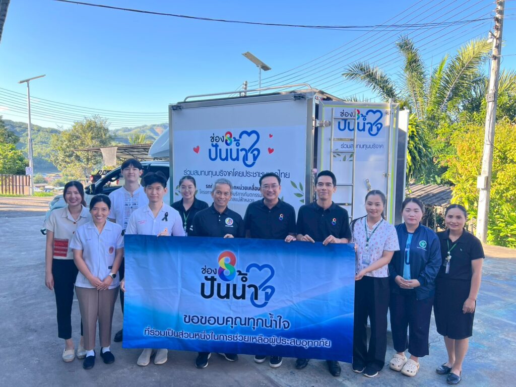 หลังจากนั้นคณะผู้แทนยังได้เดินทางไปยัง โรงพยาบาลแม่ฟ้าหลวง จ.เชียงราย เพื่อทำการส่งมอบ รถทันตกรรมเคลื่อนที่ ซึ่งจัดซื้อจากเงินบริจาคจำนวน 1,500,000 บาท ผ่านโครงการ ช่อง 8 ปันน้ำใจ ร่วมสมทบทุนบริจาคโดยพี่น้องประชาชนชาวไทย ล่าสุด รถทันตกรรมคันนี้ พร้อมสำหรับภารกิจออกหน่วยเชิงรุกในพื้นที่ห่างไกลเป็นที่เรียบร้อยแล้ว ช่วยเพิ่มโอกาสการเข้าถึงบริการสุขภาพช่องปากของประชาชนทุกกลุ่ม โดยเฉพาะหลังอุทกภัยน้ำท่วมหนักในปี 2567 ซึ่งหลายหมู่บ้านถูกตัดขาดและเข้าถึงบริการทางการแพทย์ได้ลำบาก โดยมี คุณวิชัย ภิระบรรณ์ หัวหน้ากลุ่มงานบริหารทั่วไป รพ.แม่ฟ้าหลวง เชียงราย พร้อม ทพ.ปฤษฎางค์ ศักดิ์สิทธิ์ หัวหน้ากลุ่มงานทันตกรรม รพ.แม่ฟ้าหลวง เชียงราย และเจ้าหน้าที่ผู้เกี่ยวข้อง เป็นผู้รับมอบ