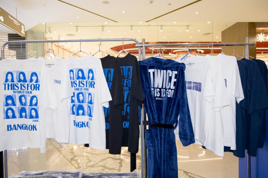 TWICE เกิร์ลกรุ๊ปชื่อดังจากเกาหลีใต้ ที่มีผลงานครองใจแฟนทั่วโลก และทัวร์คอนเสิร์ตที่เต็มไปด้วยพลังของทั้ง 9 สมาชิก ได้เดินทางมาให้แฟนๆชาวไทยได้ใกล้ชิดมากขึ้น กับ Pop-Up ที่เต็มไปด้วยความพิเศษ ซึ่งเป็น Pop-up แรก ของ Twice ในกรุงเทพฯ มาพร้อมกับสินค้า Exclusive in BKK ได้แก่ BLACK CITY SPECIFIC T-SHIRT และ WHITE CITY SPECIFIC T-SHIRT ที่สยามพารากอนเท่านั้น และอื่นๆอีกมากมาย อาทิ T-Shirt, Hoodie, Uniform, กางเกง, หมวก, รองเท้าสลิปเปอร์, กระเป๋า, Light Stick Case, พวงกุญแจ, Lovelys coin wallet, Cassette Keyring เป็นต้น