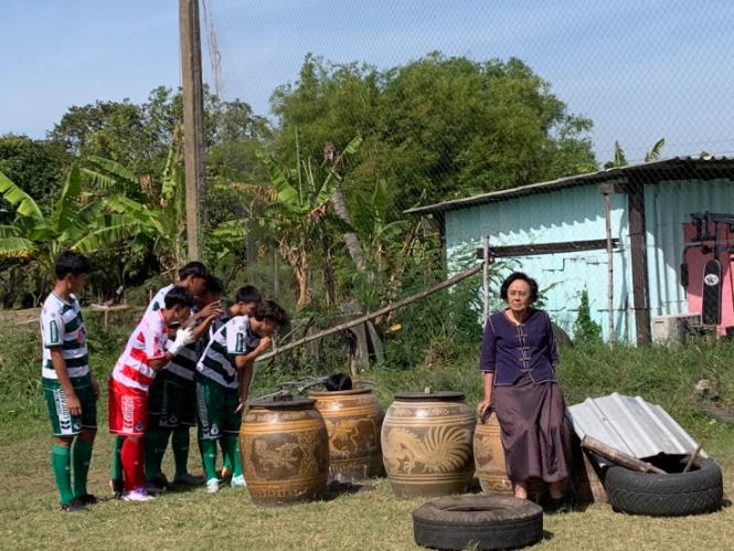 ทีมงานยกกองไปถ่ายทำถึงโรงเรียนหมอนทองวิทยา จ.ฉะเชิงเทรา บรรยากาศสนุกสนานคึกคัก น้องๆ นักฟุตบอลตื่นเต้นกับการเล่นหนังเรื่องแรก แต่บอกเลยว่าอินเนอร์มาเต็ม แอ็คติ้งผ่านฉลุย จนแม่หน่อยยังเอ่ยปากชม!
