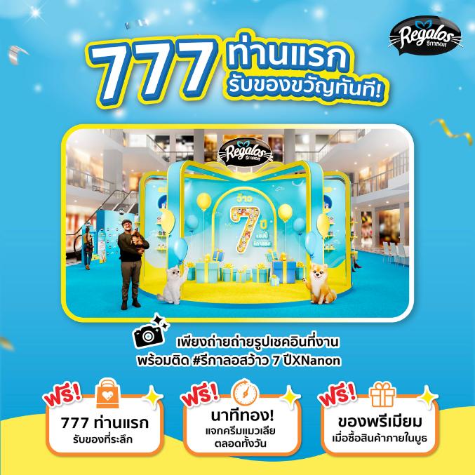- 777 คนแรก รับของขวัญทันที! แค่ถ่ายรูปเช็คอินในงาน พร้อมติดแฮชแท็ก #รีกาลอสว้าว7ปีXNanon