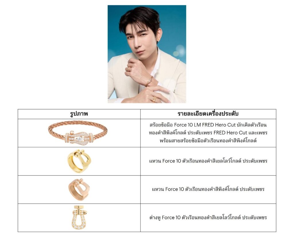 ท่ามกลางความมหัศจรรย์และแสงระยิบระยับของ Sunny FREDland มิว ศุภศิษฏ์ และ น้ำตาล ทิพนารี ถ่ายทอดเรื่องราวของคอลเล็กชั่นเครื่องประดับที่เมซง FRED ได้หยิบยกมานำเสนอมาตลอดปีที่ผ่านมา ชวนให้นึกถึงช่วงเวลาอันมีความหมายผ่านการมิกซ์แอนด์แมตช์ที่เรียบหรู มิว ศุภศิษฏ์ ถ่ายทอดสปิริตของเมซงได้อย่างสมบูรณ์แบบ ด้วยการจับคู่ผลงานการสร้างสรรค์สุดไอคอนิก Force 10 FRED Hero Cut กับเครื่องประดับอันเจิดจรัสจากคอลเล็กชั่น Force 10 ในขณะที่ น้ำตาล ทิพนารี เปล่งประกายความอ่อนช้อยผ่านเครื่องประดับดีไซน์ใหม่ของคอลเล็กชั่น Chance Infinie และเจิดจรัสอย่างมีเอกลักษณ์กับสไตล์ถัดมาด้วยเครื่องประดับ Force 10 Rise