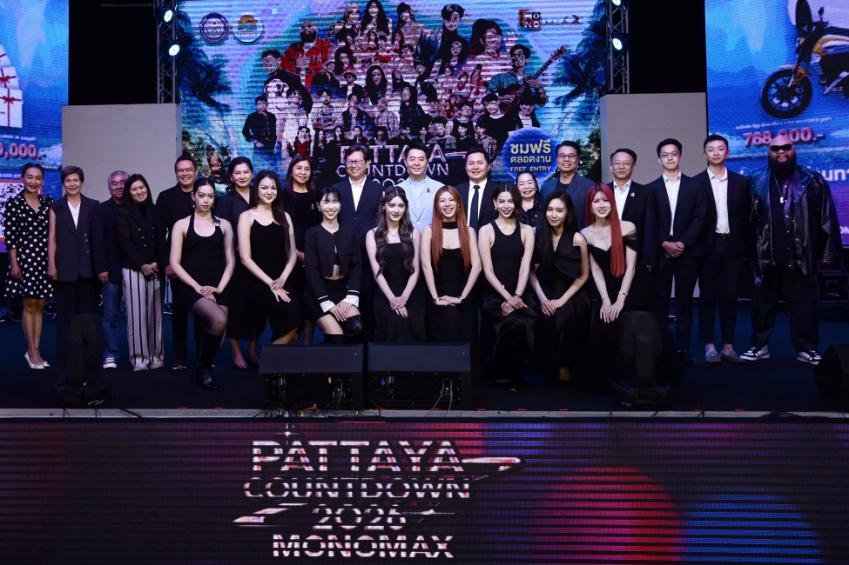 โดยจัดงานแถลงข่าวงาน “PATTAYA COUNTDOWN 2026 MONOMAX” (พัทยา เคานต์ดาวน์ 2026 โมโนแมกซ์) อย่างเป็นทางการ ณ สเตจ 1 โมโน สตูดิโอ ถนนชัยพฤกษ์ จังหวัดนนทบุรี ใน วันพุธที่ 3 ธันวาคม 2568 เวลา 13.00-15.00 น. เริ่มต้นงานด้วยการแสดงเปิดเวทีด้วยภาพ “ท้องทะเลไทย” อันอ่อนโยนและกว้างใหญ่ เปรียบดังพระเมตตาอันหาที่สุดมิได้ ของ สมเด็จพระนางเจ้าสิริกิติ์ พระบรมราชินีนาถ พระบรมราชชนนีพันปีหลวง ผู้ทรงดูแลผืนแผ่นดินและผืนน้ำไทยเสมือนมารดาแห่งธรรมชาติเคลื่อนไหวราวระลอกคลื่นสื่อถึง “Ocean of Remembrance” มหาสมุทรแห่งความทรงจำที่มีชีวิต” ที่เจริญงอกงามได้ด้วยพระราชกรณียกิจด้านการอนุรักษ์ทรัพยากรทางทะเล สื่อถึงความสงบ ความรัก ความงดงาม และความเมตตาเหนือกาลเวลา พร้อมทั้งโชว์สุดพิเศษ จากตัวแทนศิลปิน 2 แนว 2 สไตล์ กับศิลปินเกิร์ลกรุป วง ‘THX’ หยิบเพลง เหมือนเคย – Boyd Kosiyabong และ 9 นาฬิกา – SPF มาคัฟเวอร์ในสไตล์ 5 สาว ‘THX’ และ ‘F.HERO’ ที่จัดเต็มเมดเลย์เพลงแดนซ์มาวอมสเต็ปให้ได้โยกกันทั้งสตูดิโอ โดยไม่ลืมหยิบเพลงฮิต กุหลาบ (KULARB) มามอบความสนุกอย่างครบรสอุ่นเครื่องบนเวทีแบบจัดเต็มความมันส์ พร้อมด้วย ศิลปินเกิร์ลกรุป วง VIIS มาร่วมงานแถลงข่าว เพื่อการันตีงานเฉลิมฉลองส่งท้ายปีเก่าต้อนรับปีใหม่ด้วยกัน