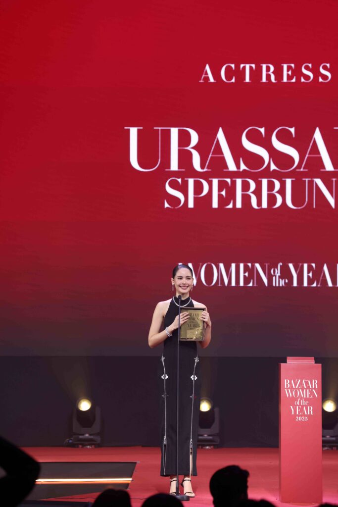 ทางด้านสาว ญาญ่า-อุรัสยา เสปอร์บันด์ เจ้าของรางวัลสาขา Actress นักแสดงหญิงผู้ครองหัวใจผู้ชมมาอย่างยาวนาน นิยามความเป็นนักแสดงผ่านจุดเปลี่ยนในละคร “จาก ‘ดวงใจอัคนี’ สู่การปลดล็อกจิตวิญญาณนักแสดงใน ‘คลื่นชีวิต’ เผยว่าความท้าทายสูงสุดคือการทำความเข้าใจ ‘ความเป็นมนุษย์’ ผ่านตัวละครจนผู้ชมเชื่อสนิทใจ ซึ่งนั่นคือความภูมิใจที่ยิ่งใหญ่กว่ารางวัลใดๆ เธอทิ้งท้ายด้วยพลังบวกถึงผู้หญิงทุกคน ให้กล้าแสดงออกผ่านแฟชั่นและใช้ชีวิตอย่างปลอดภัย โดยยึดมั่นใน ‘การรักตัวเอง’ เพราะเมื่อเรารักตัวเองมากพอ เราจะก้าวผ่านทุกอุปสรรคไปได้อย่างงดงาม”