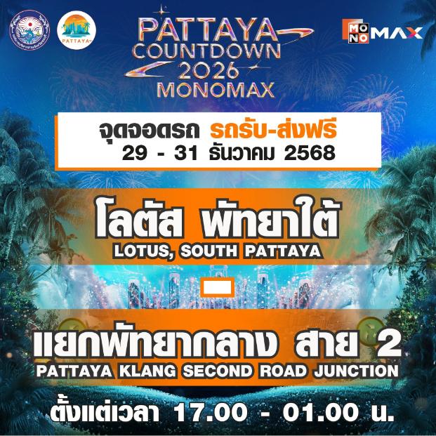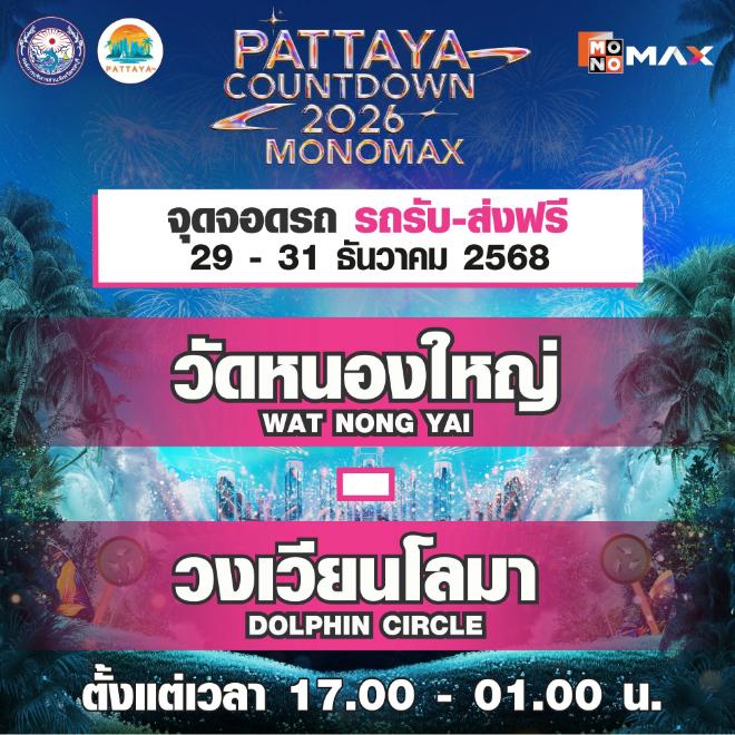 ใกล้สู่ช่วงเวลาที่หลายคนรอคอยกับค่ำคืนแห่งการเฉลิมฉลองส่งท้ายปีเก่าต้อนรับศักราชใหม่ 2026 ชายหาดพัทยาเป็นอีกหนึ่งแลนด์มาร์กที่ถูกปักหมุดขึ้นแท่นท็อปลิสต์ กับงาน “PATTAYA COUNTDOWN 2026 MONOMAX” (พัทยา เคานต์ดาวน์ 2026 โมโนแมกซ์) พิกัดเคานต์ดาวน์ริมทะเลสุดยิ่งใหญ่แห่งหนึ่งของไทย ที่ไม่ควรพลาด โดย เมืองพัทยา และองค์การบริหารส่วนจังหวัดชลบุรี ผนึกกำลังกับ MONOMAX ร่วมกันเนรมิตชายหาดพัทยาให้กลายเป็นพื้นที่แห่งความสุข ความบันเทิง และความทรงจำอันงดงาม พร้อมต้อนรับนักท่องเที่ยวจากทั่วประเทศและนานาชาติ ตลอด 3 วัน 3 คืน ระหว่างวันที่ 29–31 ธันวาคม 2568 ตั้งแต่เวลา 16.00 น. เป็นต้นไป ณ บริเวณชายหาดพัทยา ผู้ร่วมงานจะได้ดื่มด่ำประสบการณ์ เคานต์ดาวน์ริมทะเลกับโปรดักชัน แสง สี เสียง แบบจัดเต็ม เข้าชมฟรีตลอดงาน