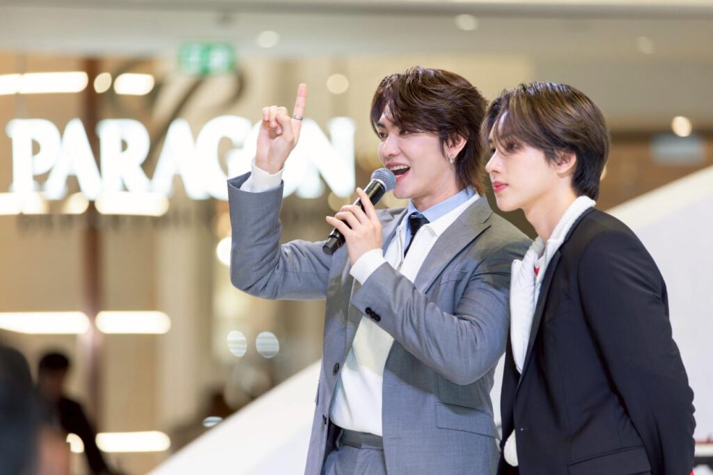เริ่มต้นความฟินกันที่ แฟชั่น ฮอลล์ ชั้น 1 ซึ่งคราคร่ำไปด้วยแฟนๆ ที่มารอพบสองหนุ่มฮอต บอส–ชัยกมล เสริมส่งวิทยะ และ โนอึล–ณัฐรัชต์ ตังวาย ทันทีที่ทั้งคู่ปรากฏตัว เสียงกรี๊ดก็ดังสนั่นก้องทั่วแฟชั่นฮอลล์ ก่อนที่สองหนุ่มจะเสิร์ฟโมเมนต์ชวนจิ้นแบบจัดเต็ม ไม่มีกั๊ก ทั้งรอยยิ้ม เสียงหัวเราะ และความใกล้ชิดที่ทำเอาแฟนๆ ฟินกันถ้วนหน้า กลายเป็นช่วงเวลาที่อิ่มเอมใจทั้งผู้ให้และผู้รับอย่างแท้จริง