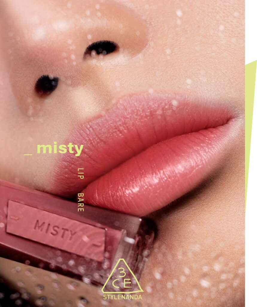 ลิปทิ้นท์นวัตกรรมใหม่ ‘Misty Lip Bare’ จาก 3CE พลิกนิยามของสีสันบนริมฝีปาก ด้วยเนื้อสัมผัส บางเบาเหมือน’ละอองน้ำ’ ให้สัมผัสเบาสบาย ไม่เหนียวเหนอะหนะ พร้อมฟินิชฉ่ำวาวแบบ Water-Sheen ผสานนวัตกรรม Water-Oil-Pigment และส่วนผสมของน้ำถึง 64% รวมทั้ง Sodium Hyaluronate, วิตามินอี และสารสกัดจากมะละกอ ให้ริมฝีปากคงความชุ่มชื้น อีกทั้งยังครีเอทลุคได้หลากหลาย ผ่านการเพิ่มเลเยอร์ลิป นอกจากนี้ ‘Misty Lip Bare’ ยังมอบเอฟเฟกต์ติดทน ทิ้งสเตนสีที่ดูเป็นธรรมชาติ ถือเป็นอีกหนึ่งไอเท็มที่ตอบโจทย์ชีวิตประจำวันได้อย่างลงตัว