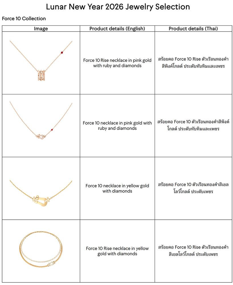 เมซง FRED ขอเชิญทุกท่านร่วมฉลองความงดงามของชีวิต ความรักที่โอบอุ้มด้วยความอ่อนโยน และคำมั่นแห่งการเริ่มต้นใหม่อันเปี่ยมด้วยความหมาย ท่ามกลางแสงสีของดอกไม้ไฟที่ส่องประกายบนท้องฟ้าในช่วงเทศกาลตรุษจีน พร้อมนำเสนอผลงานเครื่องประดับใหม่ของคอลเล็กชั่น Force 10 และ Chance Infinie ที่รังสรรค์ขึ้นเพื่อถ่ายทอดความสง่างามในบรรยากาศแห่งการเฉลิมฉลองและจิตวิญญาณแห่งความสุขอันสดใส ผลงานการสร้างสรรค์ทุกชิ้นสว่างไสวด้วยพลังแห่งความหวังของปีที่กำลังจะมาถึง พร้อมสร้างแรงบันดาลใจให้กับช่วงเวลาแห่งการพบปะอันเปี่ยมความหมาย และความทรงจำล้ำค่าที่ได้แบ่งปันร่วมกับคนสำคัญ