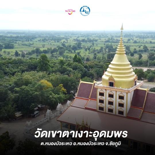 วัดเขาตาเงาะอุดมพร” ตั้งอยู่เลขที่ 12 หมู่ 4 บ้านหัวหนอง อ.หนองบัวระเหว จ.ชัยภูมิ พื้นที่ 200 ไร่ ทัศนียภาพโดยรอบสวยงาม ภายในอุโบสถประดิษฐานพระพุทธรูปขนาดใหญ่พุทธศิลป์งดงาม มีภาพวาดพระเวสสันดรชาดกที่วิจิตรประณีต