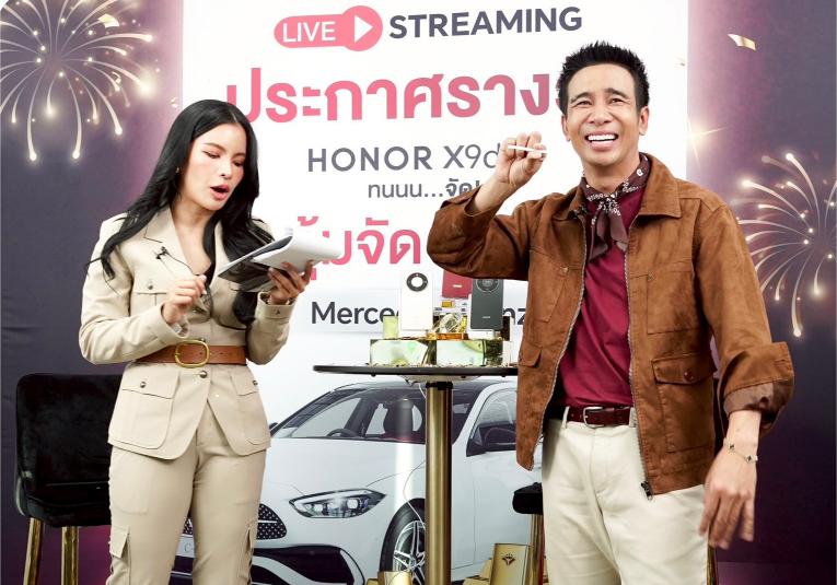 ออเนอร์ (HONOR) ประกาศรายชื่อผู้โชคดีจาก “HONOR X9d 5G คุ้มจัด ลุ้นขับ Mercedes-Benz” มอบรถยนต์ Mercedes-Benz C 350e AMG Dynamic จำนวน 1 รางวัล และทองคำหนัก 2 สลึง จำนวน 10 รางวัล สำหรับลูกค้าที่ซื้อสมาร์ตโฟน HONOR X9d 5G ระหว่างวันที่ 11 ธันวาคม 2568 ถึง 11 มกราคม 2569 โดยบรรยากาศเป็นไปอย่างคึกคักและอบอุ่น ได้รับเกียรติจากผู้บริหาร HONOR ร่วมเป็นสักขีพยาน พร้อมด้วย “ก้อง ห้วยไร่” ศิลปินขวัญใจมหาชน ในฐานะ HONOR’s Friend ร่วมสร้างสีสัน ความสนุกสนาน และทำหน้าที่จับรายชื่อผู้โชคดีด้วยตนเอง