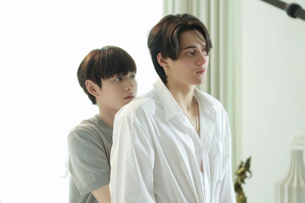 เบื้องหลังการถ่ายทำ อีพี 5 ถือเป็นอีกหนึ่งตอนที่นักแสดงต้องทำการบ้านด้านอารมณ์อย่างหนัก เพราะเป็นอีพีที่ตัวละครทุกคนเริ่ม รู้สึกตัว กับความเปลี่ยนแปลงของความสัมพันธ์ ฝั่งของ แฟ้ม และ แมทธิว ต้องถ่ายทอดความ กดดัน ที่ซ่อนอยู่ภายใต้บทสนทนาที่ดูเรียบง่าย ทั้งคู่มีการซักซ้อมบทและจังหวะอารมณ์กันอย่างละเอียด เพื่อให้สายตา ท่าทาง และน้ำเสียง สามารถสื่อสารความรู้สึกของตัวละครออกมาได้ ขณะที่คู่ของ เจมส์ และ กาด ต้องรับมือกับอารมณ์ที่สวิงมากกว่าเดิม จากความหวาน ความคาดหวัง ไปจนถึงความเจ็บปวดที่ค่อย ๆ ก่อตัว โดยเฉพาะฝั่งของกาด ที่ต้องเก็บซ่อนความอึดอัดของตัวละครไว้ภายใต้รอยยิ้ม และค่อย ๆ ปล่อยอารมณ์ออกมา ซึ่งเป็นโจทย์ที่ต้องใช้สมาธิและการควบคุมอินเนอร์อย่างมาก.