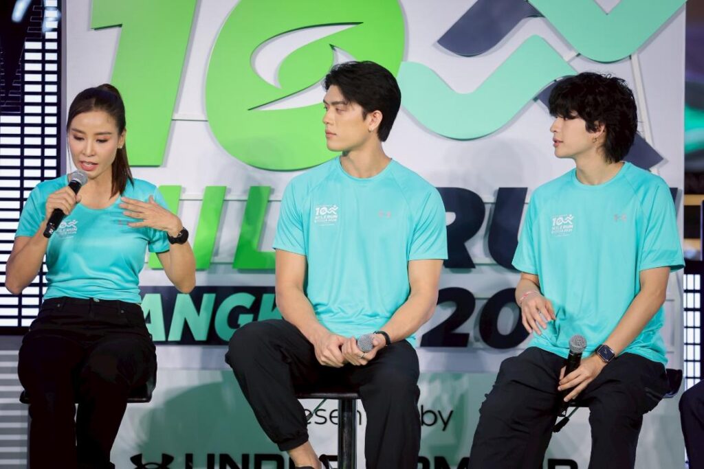 ด้าน มาร์ค–ภาคิน เสริมว่า “ผมรู้สึกเป็นเกียรติอย่างยิ่งที่ได้ร่วมเป็นส่วนหนึ่งของกิจกรรมครั้งนี้ ปัจจุบันการวิ่งแบบ City Run กำลังได้รับความนิยมอย่างมากในกลุ่มคนเมืองและคนรุ่นใหม่ เพราะสะดวกและสามารถออกกำลังกายท่ามกลางบรรยากาศของเมือง การวิ่งเป็นกิจกรรมที่ทำให้ผ่อนคลาย ได้ออกมาทำอะไรใหม่ๆ ได้มิตรภาพเพิ่มขึ้น Supersports 10 Mile Run 2026 Presented by Under Armour จึงถือเป็นรายการวิ่งที่ตอบโจทย์ไลฟ์สไตล์คนเมืองได้อย่างลงตัว และยังเป็นงานวิ่งใจกลางเมืองเพียงหนึ่งเดียวที่วัดระยะทางเป็นไมล์ ที่สำคัญงานนี้ยังให้ความสำคัญกับสิ่งแวดล้อมอย่างจริงจัง ทั้งการลดขยะ การใช้วัสดุ BIO PLASTIC และการคัดแยกขยะตามหลัก 3R ผู้เข้าร่วมจะได้ทั้งสุขภาพที่แข็งแรงและมีส่วนร่วมในการดูแลสิ่งแวดล้อมไปพร้อมกัน จึงอยากเชิญชวนทุกคนมาร่วมซ้อมให้พร้อม แล้วมาสร้างประสบการณ์การวิ่งดี ๆ ร่วมกันในวันที่ 17 พฤษภาคมนี้ ที่ศูนย์การค้าเซ็นทรัลเวิลด์ครับ”