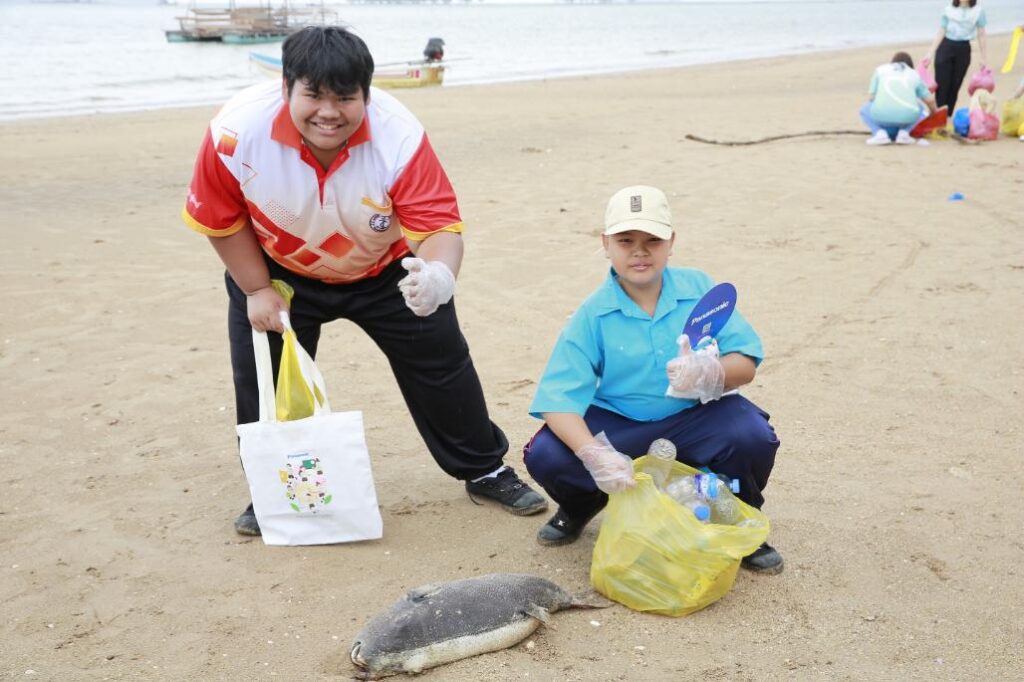 พร้อมกันนี้ พานาโซนิคยังได้จัดกิจกรรมเวิร์กช้อปสร้างการเรียนรู้ผ่านการลงมือปฏิบัติจริง ทั้งการสอนคัดแยกขยะอย่างถูกวิธี และการพาน้อง ๆ นักเรียนลงพื้นที่ชายหาดเพื่อเก็บขยะและเรียนรู้ผลกระทบต่อสิ่งแวดล้อม โดยขยะที่พบส่วนใหญ่เป็นพลาสติกใช้ครั้งเดียวทิ้ง (Single-use plastic) จากนักท่องเที่ยว อาทิ กล่องโฟมบรรจุอาหาร ถุงพลาสติก ขวดและแก้วน้ำพลาสติก รวมถึงฝาขวดน้ำ กิจกรรมนี้ถือเป็นการบ่มเพาะพลังเยาวชนให้เห็นความสำคัญของการแยกขยะตั้งแต่ต้นน้ำ พร้อมสร้างการมีส่วนร่วมในการปกป้องและฟื้นฟูสิ่งแวดล้อมในชุมชนชายฝั่งของตนเองให้คงความสวยงามอย่างยั่งยืนต่อไป