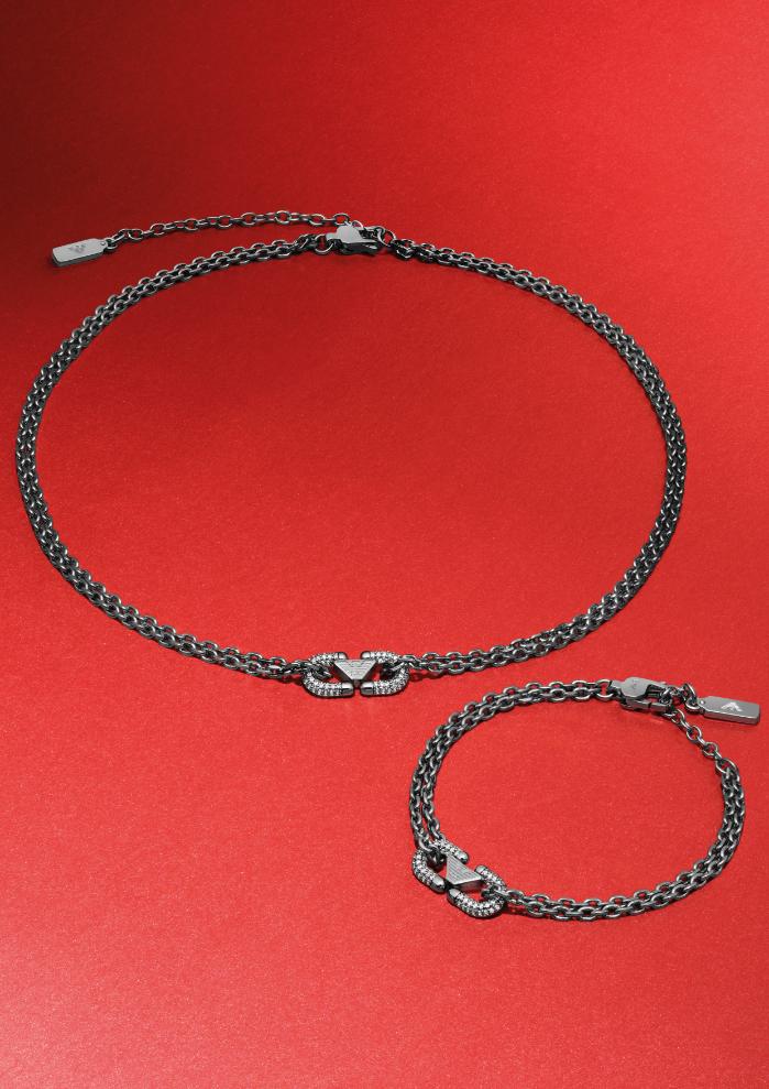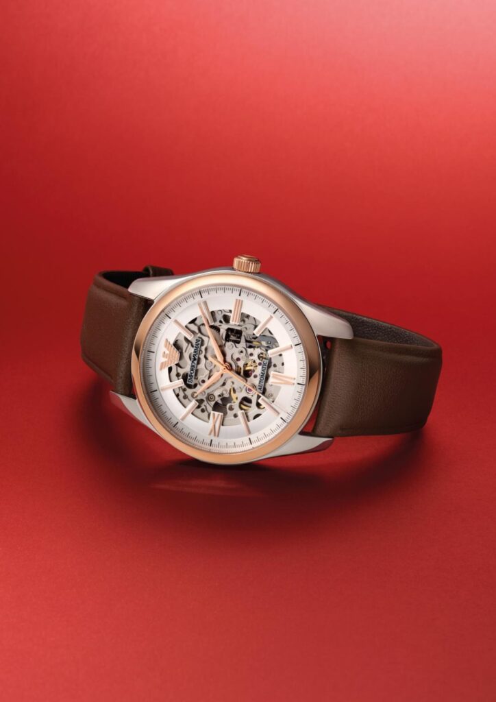 ด้านเครื่องประดับ Emporio Armani เผยโฉมนาฬิการะบบ Automatic โดดเด่นด้วยหน้าปัดที่เผยให้เห็นความงดงามของกลไกภายใน พร้อมสายหนังสีน้ำตาล มอบลุคเรียบหรูสำหรับหนุ่มๆ แมตช์กับสร้อยคอและกำไลข้อมือดีไซน์รูปเกือกม้า ซึ่งได้แรงบันดาลใจจากนักษัตรประจำปี เสริมด้วยแว่นตาและแว่นกันแดดที่ผสานทั้งสไตล์และการใช้งานได้อย่างลงตัว