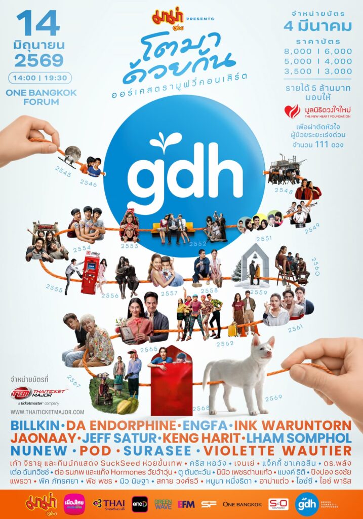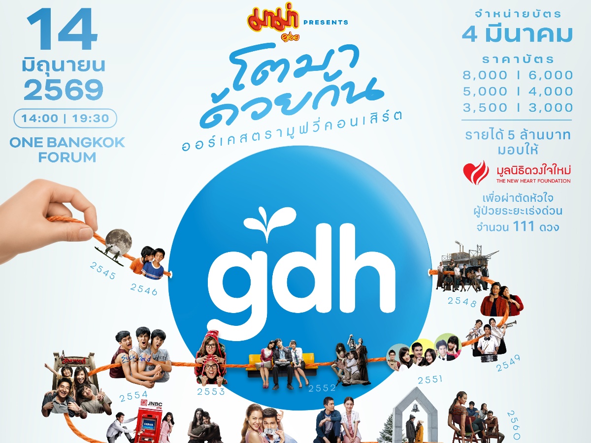 สิ้นสุดการรอคอย เมื่อ บริษัท จีดีเอช ห้าห้าเก้า จำกัด ร่วมกับ บริษัท เอส ทู ออร์กาไนเซอร์ จำกัด พร้อมเสิร์ฟความสุขให้กับแฟนๆ คอหนังใน “มาม่า presents GDH โตมาด้วยกัน ออร์เคสตรามูฟวี่คอนเสิร์ต” ครั้งแรกกับคอนเสิร์ตที่จะพาทุกคนย้อนกลับไปสู่ความทรงจำแสนประทับใจจากจักรวาล GTH & GDH ผ่านบทเพลงและฉากในตำนาน ในรูปแบบออร์เคสตราเต็มรูปแบบ จัดขึ้นทั้งหมด 2 รอบการแสดง ในวันเสาร์ ที่ 14 มิถุนายน 2569 เวลา 14:00 น. และ 19:30 น. ณ One Bangkok Forum ซึ่งงานนี้ได้ 3 หัวเรือใหญ่ เก้ง–จิระ มะลิกุล, วัน-วรรณฤดี พงษ์สิทธิศักดิ์ และ ปิ๊ง-อดิสรณ์ ตรีสิริเกษม มารับหน้าที่ Show Director ถ่ายทอดเสน่ห์และความตราตรึงของผลงานหนังของ GTH & GDH ให้กลายเป็นประสบการณ์การแสดงสดบนเวทีที่แฟนๆ จะไม่มีวันลืม