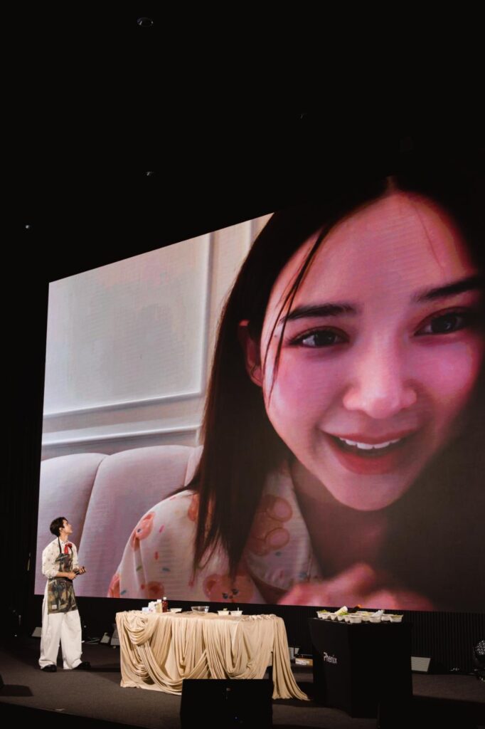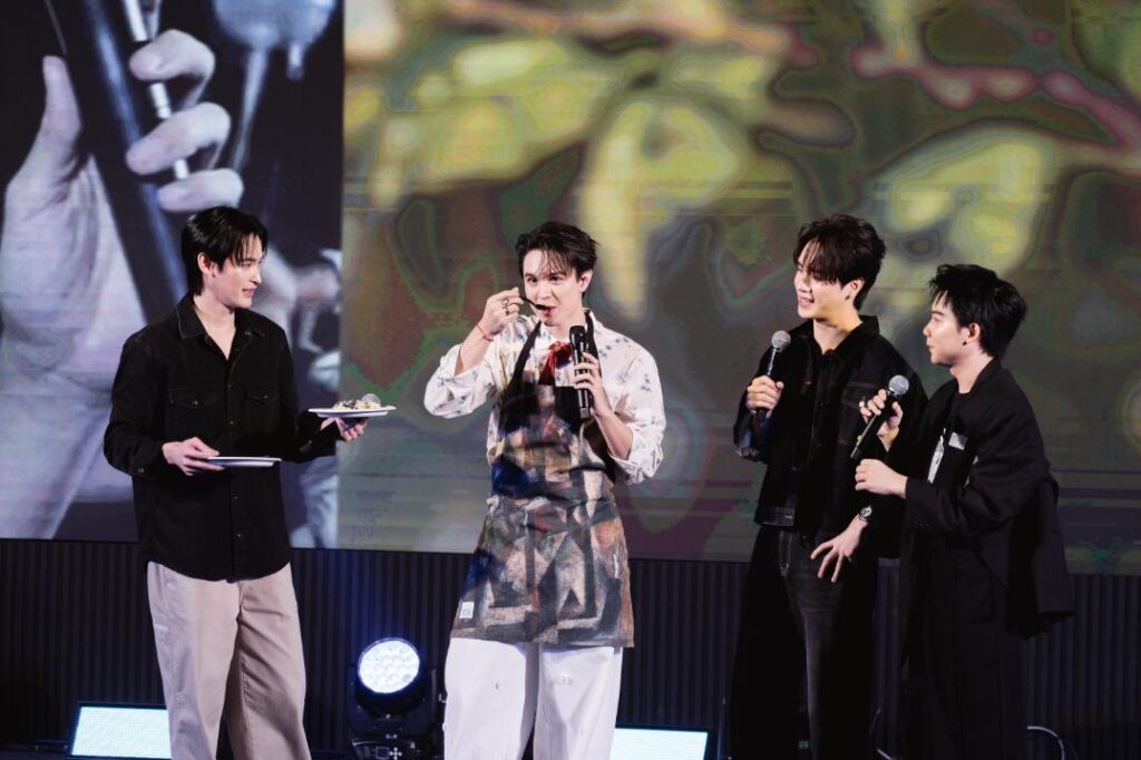 ต้อนรับเข้าสู่งานด้วยเพลง “ใจให้ไป” และ “แพ้คำว่ารัก” ที่เลือกมาเพื่อทุกคนโดยเฉพาะ ก่อนจะเปิดตัวพิธีกร “มอสมัดจุก” งานนี้ไม่ได้มาสัมภาษณ์งานแต่มาถามคำถามจากแฟน ๆ ต่อด้วยช่วงพิเศษที่มีผู้โชคดีได้รับการ์ดพิเศษขึ้นมาร่วมสนุกบนเวทีและรับของรางวัลกันไปแบบสนุกสนาน ก่อนจะเข้าสู่โหมดพ่อครัวที่หนุ่มไมกี้ขอพรีเซนต์สุด ๆ แต่จะให้มาทำเมนูธรรมดาก็คงไม่ได้ งานนี้เลยต้องมีเงื่อนไขพิเศษกันหน่อย กับโจทย์วัตถุดิบ“โยเกิร์ต” จากนางเอกคู่ซี้อย่าง “ญดา นริลญา” ตามมาด้วย “วาซาบิ”จาก “เทศน์ ไมรอน” และ “บลูเบอรี่” จาก แบม-สราลี รวมทั้งยังมีวัตถุที่ต้องแรมดอมมาเป็นส่วนผสมของยำจานพิเศษนี้อีกด้วย พร้อมอีกหนึ่งเซอร์ไพรส์เรียกเสียงกรี๊ดจากแฟน ๆ เมื่อ “เก้า นพเก้า” และ “ตี๋ ธนพล” ขออาสาขึ้นมาชิมเมนูสุดสดชื่น