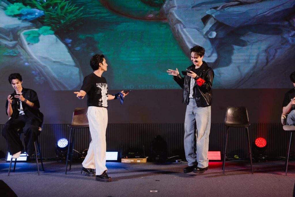 ความสนุกในวันนี้ยังไม่หมด เมื่อไมกี้ ขอชวนพี่น้องคนสนิท “เฟิร์ส ภาราดา – เด่นคุณ งานเนตร – จ็อบ ธัชพล” มาร่วมเล่นฟูลแบนด์ในเพลง “ดอกกระเจียวบาน” “แรงโน้มถ่วง” และ “แสงสุดท้าย” โชว์สกิลด้านดนตรีที่เจ้าตัวทุ่มเทฝึกซ้อมมาเพื่อวันนี้โดยเฉพาะ แต่เมื่อมีสมาชิกมาแจมกันบนเวทีเพียบขนาดนี้แล้ว เลยต้องขอเปิดอีกหนึ่งกิจกรรมที่รวมตัวเล่นกันเป็นประจำอยู่แล้วอย่าง ROV ที่งานนี้มาดวลกันให้ดูแบบสด ๆ โดยได้อีกหนึ่งเพื่อนซี้ “ภูมิ ชวัลวัฒน์ “ และ “น้องลีวายส์ อินฑัช” มาร่วมเสริมทีม พร้อมด้วยนักพากย์ตัวยง “SakeZa เสกซ่า” มาร่วมมอบความมันส์ในครั้งนี้