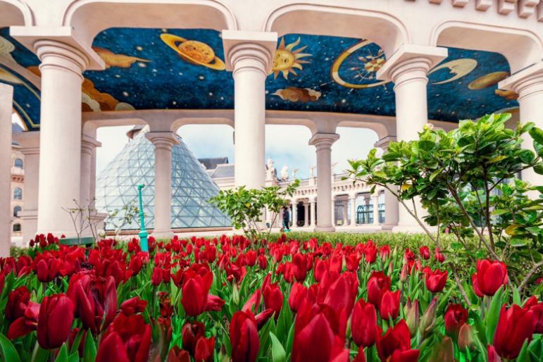 ความพิเศษของเทศกาลในปีนี้คือการออกแบบภูมิทัศน์ที่เน้นความต่อเนื่อง แทนที่จะจัดการแสดงเพียงจุดเดียว แต่ทีมงานผู้เชี่ยวชาญด้านพืชสวนได้ทุ่มเทเวลาหลายเดือนในการเพาะปลูกและดูแลดอกทิวลิปทั้งหมดภายในพื้นที่บานาฮิลล์เอง 100% เพื่อควบคุมอุณหภูมิและช่วงเวลาการออกดอกให้แม่นยำที่สุด จนเกิดเป็นสายธารดอกไม้ที่ไหลผ่านลานกลาง จุดเดินเท้า และบริเวณปราสาทต่าง ๆ อย่างเป็นธรรมชาติ สร้างความรู้สึกให้นักท่องเที่ยวเหมือนกำลังเดินเล่นอยู่ในพรมดอกไม้ขนาดมหึมาที่เปลี่ยนทัศนียภาพไปตามทุกย่างก้าว โดยมีการไล่เฉดสีตั้งแต่สีแดงร้อนแรงไปจนถึงสีขาวบริสุทธิ์ มอบมุมมองที่สวยงามแตกต่างกันในทุกช่วงเวลาของวัน