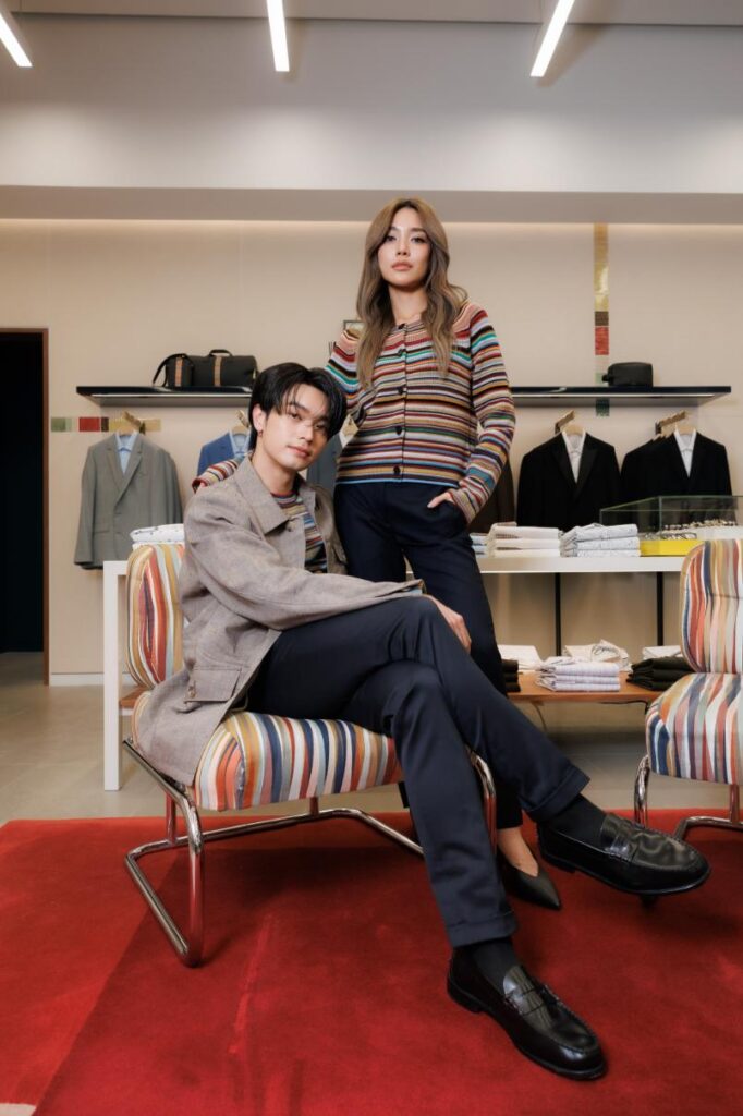 งานนี้ทั้งคู่มาในลุคแคชชวลสบายๆ แต่เต็มไปด้วยเสน่ห์ ความสนุก และความอบอุ่น สะท้อนเอกลักษณ์ของ Paul Smith ได้อย่างชัดเจน โดยเฉพาะลูกเล่นสีสันบนไอเท็มคลาสสิกที่ช่วยเติมความสดใสให้บรรยากาศวาเลนไทน์หวานยิ่งขึ้นไปอีก