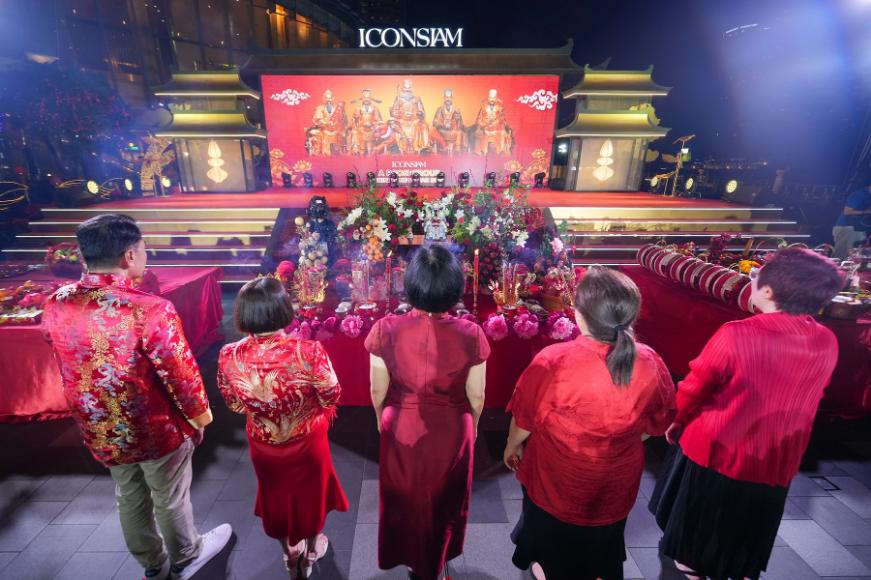 ความพิเศษของพิธีในครั้งนี้ ไอคอนสยามได้รับเกียรติจาก อาจารย์คฑา ชินบัญชร มาเป็นผู้นำพิธีและให้ความรู้เกี่ยวกับองค์เทพเจ้าสำคัญ 3 องค์ ได้แก่ เทพเจ้าไฉ่ซิงเอี๊ย (เทพแห่งโชคลาภ), เทพเจ้าฮี่ซิงเอี๊ย (เทพเจ้ารื่นเริงยินดี) และเทพเจ้ากุ่ยซิงเอี๊ย (เทพเจ้ายศศักดิ์กัลยาณมิตร) ซึ่งนอกจากความศักดิ์สิทธิ์แล้ว ผู้เข้าร่วมงานยังได้รับประสบการณ์ที่แตกต่างจากการเรียนรู้วิธีการไหว้ที่ถูกต้องตามประเพณีดั้งเดิม ท่ามกลางบรรยากาศริมแม่น้ำเจ้าพระยาบน “ทำเลท้องมังกร” อันเป็นมงคล โดยไอคอนสยามได้จัดเตรียมพื้นที่และอำนวยความสะดวกในทุกขั้นตอน เพื่อให้ทุกคนสามารถเข้าร่วมประกอบพิธีสำคัญเพื่อเริ่มต้นปีใหม่อย่างรุ่งโรจน์และเปี่ยมด้วยศรัทธา