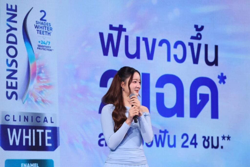 “อิ้งค์” ทิ้งท้ายว่า “เซ็นโซดายน์เข้าใจผู้บริโภคมาก ๆ ตอนนี้ยาสีฟัน Sensodyne Clinical White เป็นยาสีฟันไวท์เทนนิ่งสูตรแรกและสูตรเดียวในตลาดที่รวม 2 คุณสมบัติที่ช่วยให้ฟันขาวขึ้น 2 เฉด และลดการเสียวฟัน 24 ชั่วโมง สามารถใช้ได้ทุกวัน เมื่อกี้ก่อนมางานนี้อิ้งค์ก็เพิ่งใช้แปรงฟัน เพราะเป็นไอเทมเสริมความมั่นใจที่ขาดไม่ได้ อิ้งค์ใช้สลับกันทั้ง 2 สูตร ใครที่เป็นสายติดกาแฟ กินแซ่บ อยากมีฟันขาวแต่กลัวเสียวฟัน มองหาตัวช่วยฟันขาวที่ไว้ใจได้ ลองใช้ยาสีฟัน Sensodyne Clinical White หลอดนี้ อิ้งค์ไว้ใจค่ะ ฟันขาวชัวร์ ไม่กลัวเสียวฟัน แน่นอน”