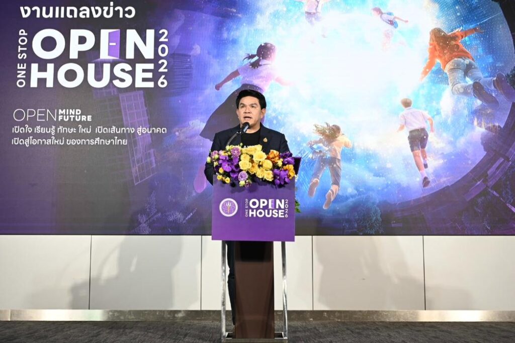 กรุงเทพฯ, 25 กุมภาพันธ์ 2569 – กระทรวงการอุดมศึกษา วิทยาศาสตร์ วิจัยและนวัตกรรม (อว.) ประกาศเตรียมความพร้อมจัดงาน “One Stop Open House 2026″ ภายใต้แนวคิด “Open Mind Open Future” ระหว่างวันที่ 6 – 8 มีนาคม 2569 ณ ศูนย์การประชุมแห่งชาติสิริกิติ์ โดยมีเป้าหมายเพื่อเป็นเวทีกลางเชื่อมโยงข้อมูลด้านการศึกษา อาชีพ และโอกาสทางการพัฒนาศักยภาพของเยาวชนไทยอย่างครบวงจร ทั้งในด้านการเข้าถึงหลักสูตรจากมหาวิทยาลัย ทั่วประเทศในสถานที่เดียว การแนะแนวเส้นทางอาชีพ รวมถึงการพัฒนา Soft Skills และ Future Skills ที่จำเป็นสำหรับโลกในศตวรรษที่ 21 โดยมี นายสุรศักดิ์ พันธ์เจริญวรกุล รัฐมนตรีว่าการกระทรวงการอุดมศึกษา วิทยาศาสตร์ วิจัยและนวัตกรรม (รมว.อว.) เป็นประธานในการแถลงข่าว พร้อมด้วย ศ.ดร.ศุภชัย ปทุมนากุล ปลัดกระทรวง อว. หน่วยงานภายใต้การกำกับดูแลของกระทรวง อว. และผู้บริหาร เข้าร่วมงานในครั้งนี้