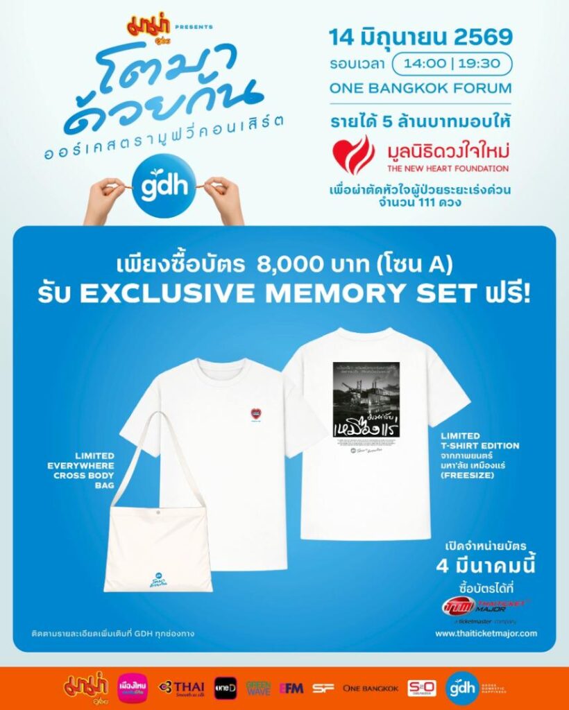 ถึงเวลานับถอยหลังสู่วันกดบัตรคอนเสิร์ต “มาม่า presents GDH โตมาด้วยกัน ออร์เคสตรามูฟวี่คอนเสิร์ต” ที่จะเปิดจำหน่ายในวันพุธ ที่ 4 มีนาคมนี้ โดยเริ่มตั้งแต่เวลา 10:00 น. เป็นต้นไป งานนี้แฟนๆ เตรียมวอร์มนิ้วให้พร้อม เพราะเป็นอีกหนึ่งคอนเสิร์ตสุดพิเศษที่รวมภาพยนตร์ ดนตรี และความทรงจำตลอดการเดินทางของ GTH & GDH ไว้บนเวทีเดียว