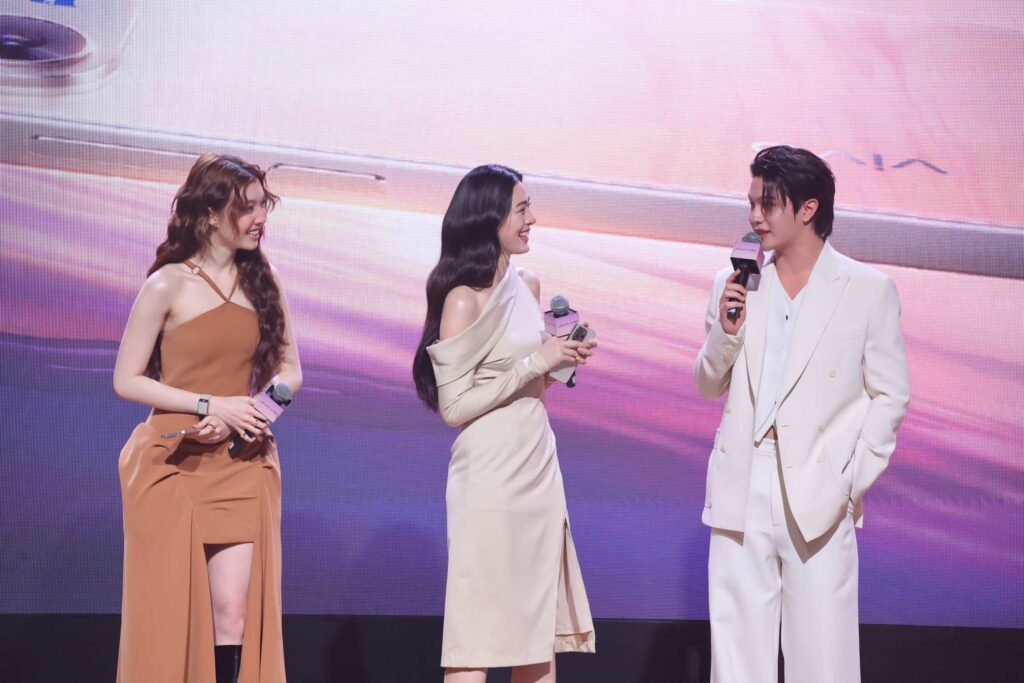 บรรยากาศภายในงานเปิดตัว vivo V70 เต็มไปด้วยความสดใสและอบอวลไปด้วยออร่าที่สะกดทุกสายตา เพราะงานนี้ ‘หลิงหลิง-คอง’ และ ‘ออม-กรณ์นภัส’ ไม่เพียงแต่ปรากฏตัวในฐานะ vivo Friends คนสำคัญเท่านั้น แต่ยังมาเป็นตัวแทนนิยามความงามระดับ “ลูกรักพระเจ้า” ที่ถูกถ่ายทอดผ่านเลนส์สมาร์ตโฟน vivo V70 ได้อย่างสมบูรณ์แบบ โดยทั้งคู่ได้ร่วมขึ้นเวทีพูดคุยเกี่ยวกับความประทับใจจากการใช้งานจริง แสดงให้เห็นถึงพลังการเนรมิตภาพพอร์ตเทรตสวยเป๊ะดูเป็นธรรมชาติเสมือนพระเจ้าตั้งใจสร้าง พร้อม Special Guest อย่าง วิลเลี่ยม-จักรภัทร ศิลปินหนุ่มจากกลุ่มไอดอล T-POP รุ่นใหม่ “ฉายาปอดแห่ง T-POP” ที่มาร่วมส่งมอบโชว์พิเศษบนเวทีที่พิสูจน์ให้เห็นถึงความสามารถของสมาร์ตโฟนรุ่นนี้ในการเก็บทุกรายละเอียดความงดงามแบบมืออาชีพสมการรอคอย