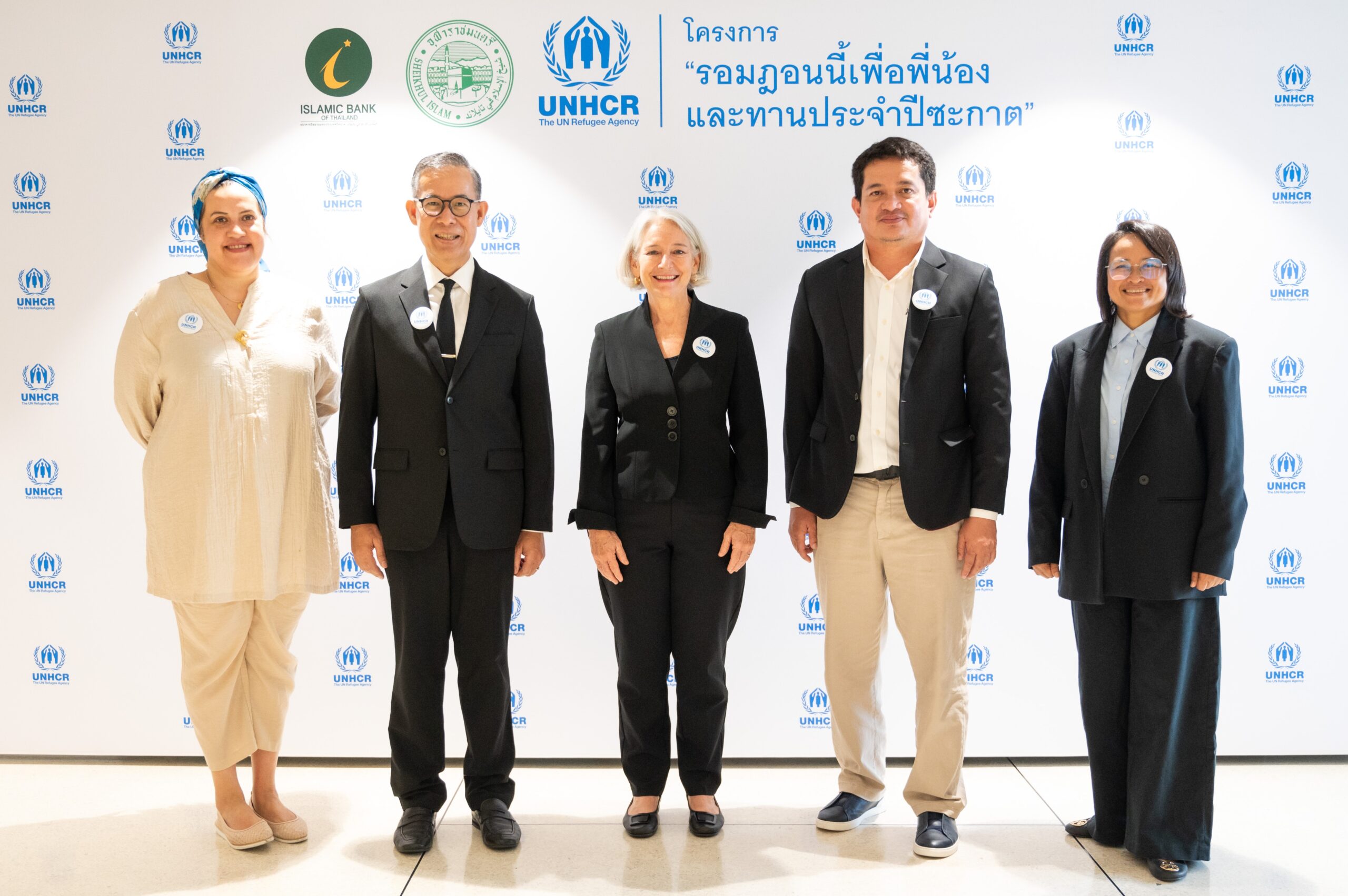 สำนักงานข้าหลวงใหญ่ผู้ลี้ภัยแห่งสหประชาชาติ (UNHCR) ร่วมกับ สำนักจุฬาราชมนตรี ธนาคารอิสลามแห่งประเทศไทย สานต่อความร่วมมือ “โครงการรอมฎอนนี้เพื่อพี่น้องและทานประจำปีซะกาต” ต่อเนื่องเป็นปีที่ 9 โดยในเทศกาลแห่งการให้และการแบ่งปันปีนี้มีเป้าหมายเพื่อช่วยเหลือผู้ลี้ภัยและผู้พลัดถิ่นพี่น้องชาวมุสลิมทั่วโลกและพี่น้องมุสลิมในประเทศไทย ในการนี้ คุณแทมมี่ ชาร์ป (คนกลาง) ผู้แทนข้าหลวงใหญ่ผู้ลี้ภัยแห่งสหประชาชาติประจำประเทศไทยให้การต้อนรับพันธมิตรผู้เป็นกำลังสำคัญซึ่งได้สนับสนุนและสานต่อความร่วมมืออย่างต่อเนื่องตลอดหลายปีที่ผ่านมา นำโดย อาจารย์ซากีย์ พิทักษ์คุมพล (ที่ 2 จากขวา) ดร.ทวีลาภ ฤทธาภิรมย์ (ที่ 2 จากซ้าย) คุณฐปณีย์ เอียดศรีไชย (ขวาสุด) และ คุณแซนดร้า สเต็ปเป้ (ซ้ายสุด) ณ สำนักงานข้าหลวงใหญ่ผู้ลี้ภัยแห่งสหประชาชาติประจำประเทศไทย (UNHCR) กรุงเทพมหานคร