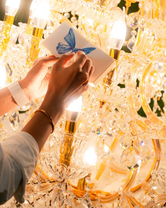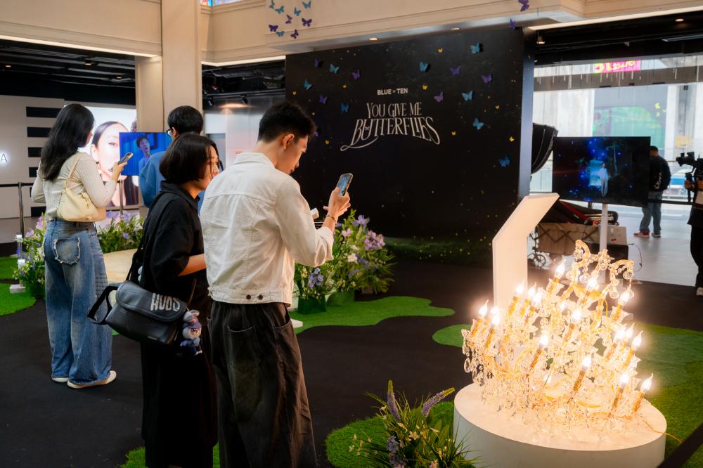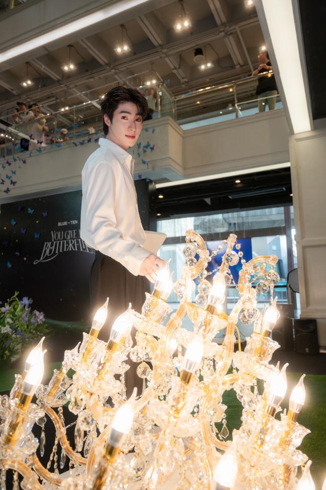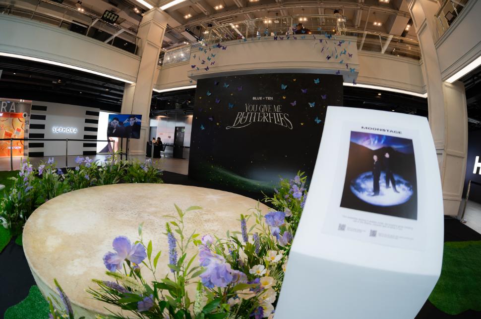 เพราะนี่ไม่ใช่นิทรรศการธรรมดา แต่คือ Experience Space ที่ชวนคุณ “ก้าวเข้าไปอยู่ในเพลง” จริง ๆ จากภาพในจอ สู่ฉากตรงหน้า จากความรู้สึกในหูฟัง สู่ความรู้สึกที่ล้อมรอบตัว ด้วยทุกโซนถูกออกแบบอย่างพิถีพิถัน ทั้งแสง สี เสียง และผีเสื้อที่โอบล้อมคุณไว้ในทุกย่างก้าว เพื่อถ่ายทอดโมเมนต์โรแมนติกและความฝันแบบ Immersive ตั้งแต่วินาทีแรกที่ได้เดินเข้าไป ให้คุณได้สัมผัสความรู้สึกพิเศษแบบเดียวกับบลูและเตนล์ ได้สัมผัสความตื่นเต้นเล็ก ๆ ในหัวใจ เหมือนมีผีเสื้อบินอยู่ข้างในท้อง พัฒนาความสุขเล็ก ๆ ที่ขยายใหญ่ในทุกก้าวของการเดินชมงาน