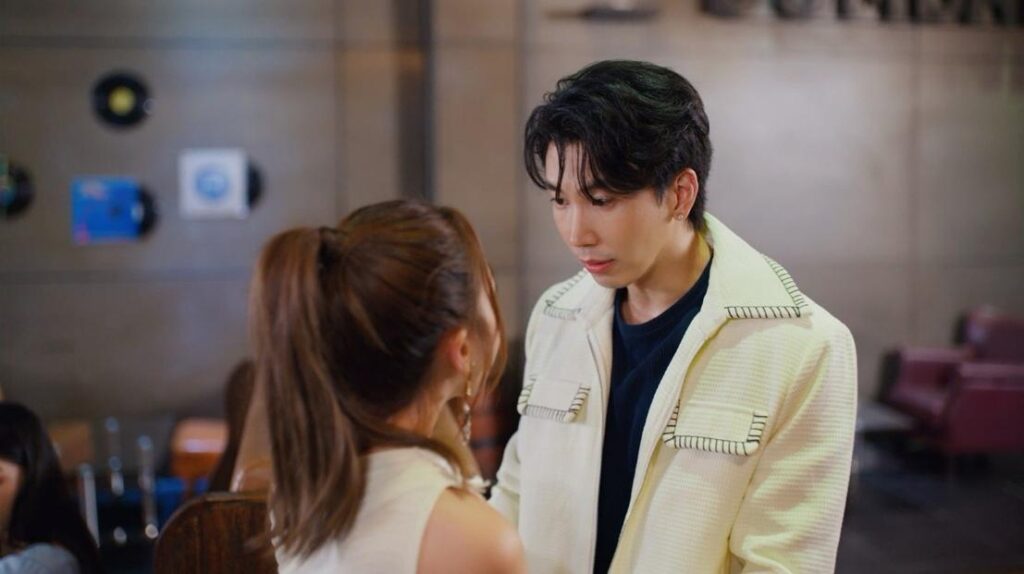 พอข่าวลอยไปถึงหูระฟ้า ท่าที “เป็นห่วงบริษัท” ชัดเจนจนปิดไม่มิด ถึงขั้นต้องออกโรงไปประชุมงานถึงหน้าเซ็ตกองถ่ายภาพนิ่งของซันด้วยตัวเอง และนั่นกลายเป็นโมเมนต์เผชิญหน้าครั้งแรกระหว่าง “ระฟ้า” กับ “พีช” ที่บอกเลยว่าบรรยากาศตึงจนแฟนคลับแทบหยุดหายใจ