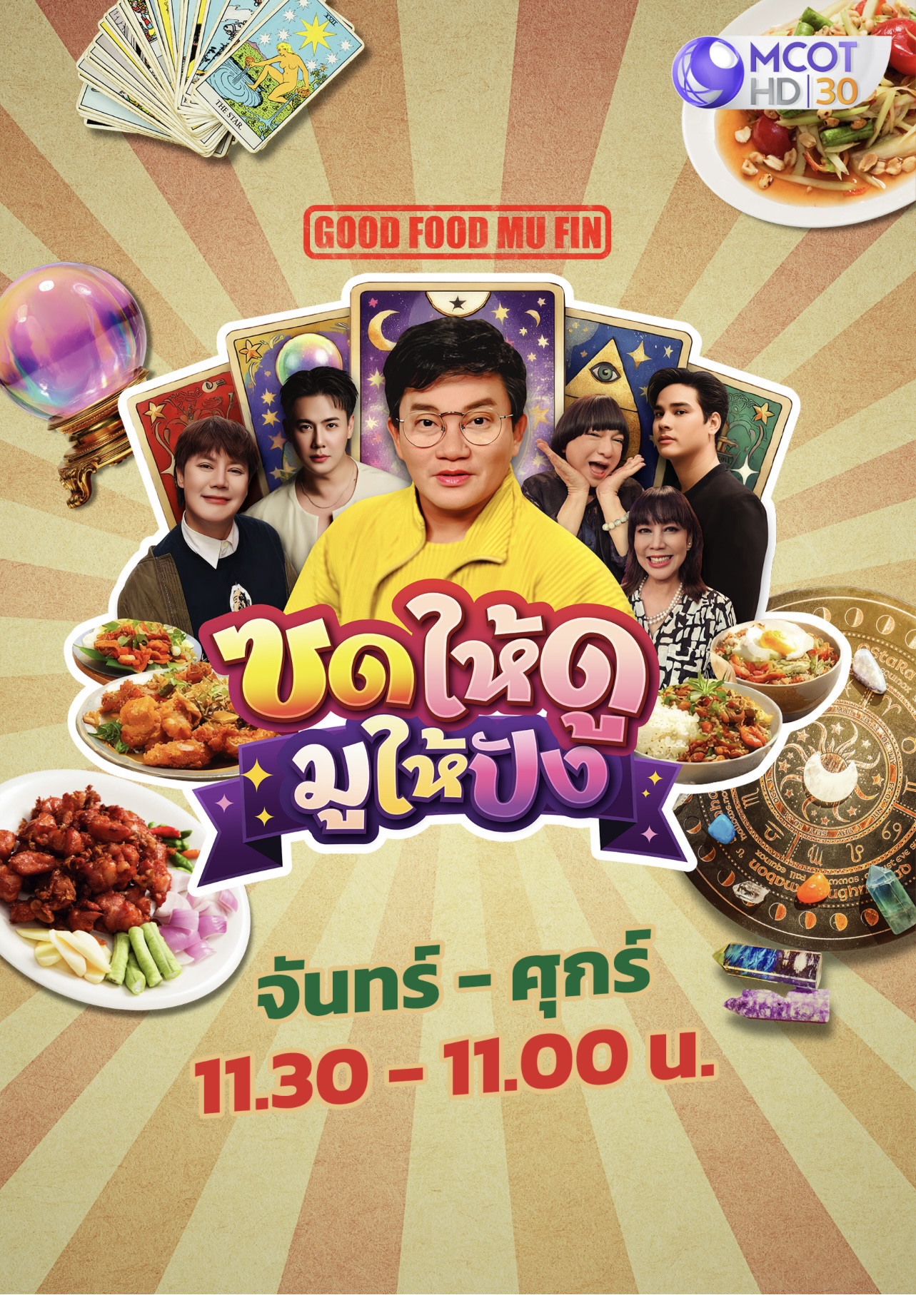 ปักหมุดไว้ได้เลยชมสดแบบเรียลไทม์ เวลา 11.00 น ทั้งทีมหน้าจอ และทางแพลตฟอร์มออนไลน์ https://www.facebook.com/9mcot พบกับการแนะนำร้านอาหาร พร้อมขนเมนูจานเด็ดประจำร้านมาอวด “ซด” ให้ดูกันสด ๆ จานนี้อร่อยจริง การันตี พร้อมด้วยนำเสนอเรื่องราวของบุคคลสายมู เรื่องเล่าความเชื่อผ่านประสบการณ์จริง เคล็ดลับสายมู ไหว้ที่ไหน แก้ดวงอย่างไร ดูอย่างไรก็ปัง และนำเสนอเรื่องราวเกี่ยวกับสุขภาพความสวย ความงาม นวัตกรรมใหม่ ที่มีแง่มุมน่าสนใจและเป็นประโยชน์ต่อผู้ชม พร้อมอัปเดตผลิตภัณฑ์คุณภาพ ของเด็ด ของดี ของโดน