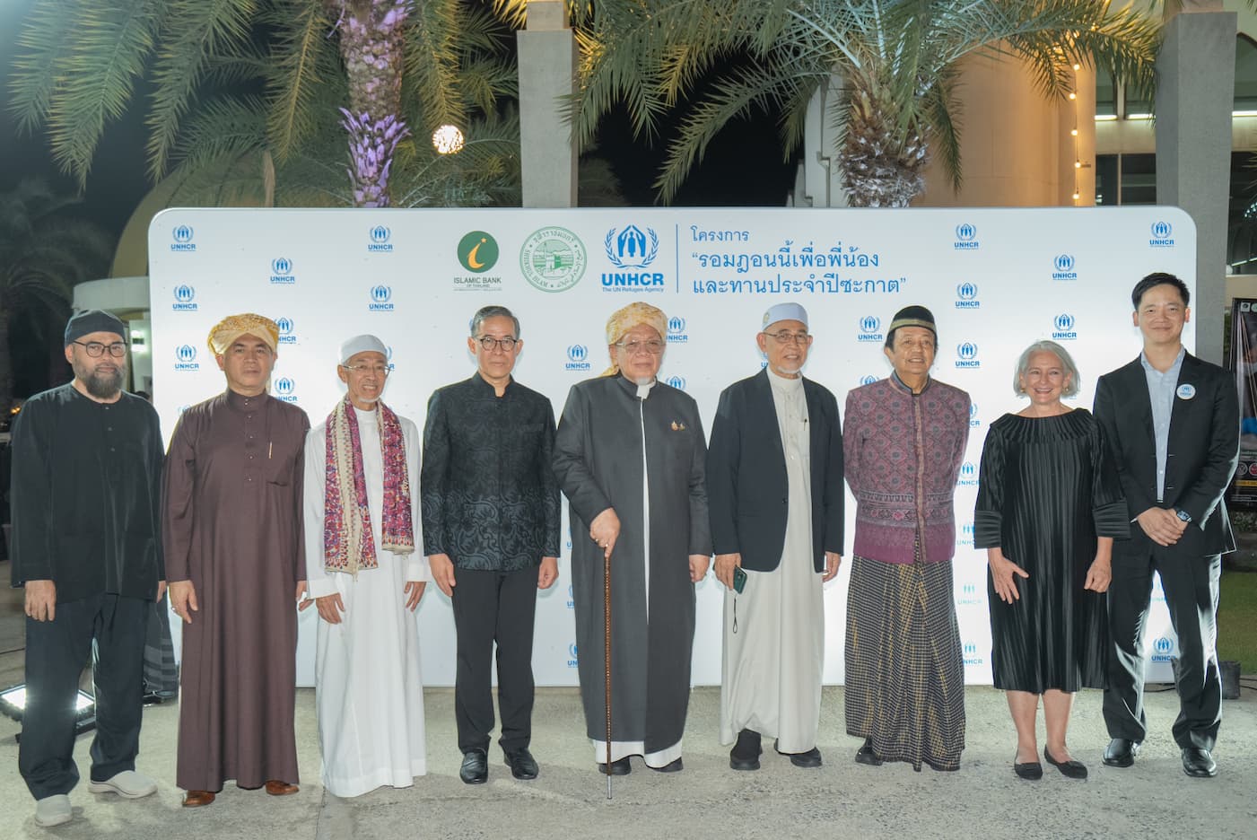 ในโอกาสนี้ อาจารย์วรพจน์ ไวยเวทา (ซ้ายสุด) ผู้อำนวยการสถาบันศิลปะอิสลามแห่งประเทศไทย ได้ร่วมบริจาคผลงานศิลปะชิ้นเอกของท่านเพื่อนำมาจัดประมูลการกุศลภายในงานโดยไม่หักค่าใช้จ่าย และคุณดำรง พุฒตาล (ที่ 3 จากขวา) ผู้สนับสนุนผู้มีชื่อเสียง UNHCR ได้กล่าวขอบคุณแขกผู้มีเกียรติและพันธมิตรทุกท่านที่ให้การสนับสนุนอย่างต่อเนื่องเพื่อส่งต่อความช่วยเหลือให้แก่ผู้ลี้ภัยทั่วโลกได้อย่างต่อเนื่องและยั่งยืน ณ มัสยิดอิมาร่อตุดดีน ที่ผ่านมา