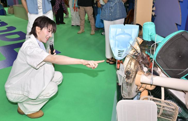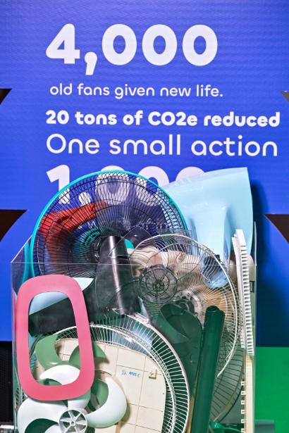 3. โซนให้ความรู้ Recycle Journey: ถ่ายทอดขั้นตอนการรีไซเคิลพลาสติกจากพัดลมเก่า ตั้งแต่การคัดแยกชิ้นส่วน ไปจนถึงกระบวนการแปรรูปเป็นวัสดุใหม่ ภายในพื้นที่มีการจัดแสดงโครงสร้างและส่วนประกอบของพัดลมให้ผู้เข้าชมได้เห็นอย่างใกล้ชิด พร้อมเปิดโอกาสให้ทดลองบดเม็ดพลาสติกด้วยตนเอง เพื่อทำความเข้าใจกระบวนการนำวัสดุกลับมาใช้ประโยชน์อีกครั้ง