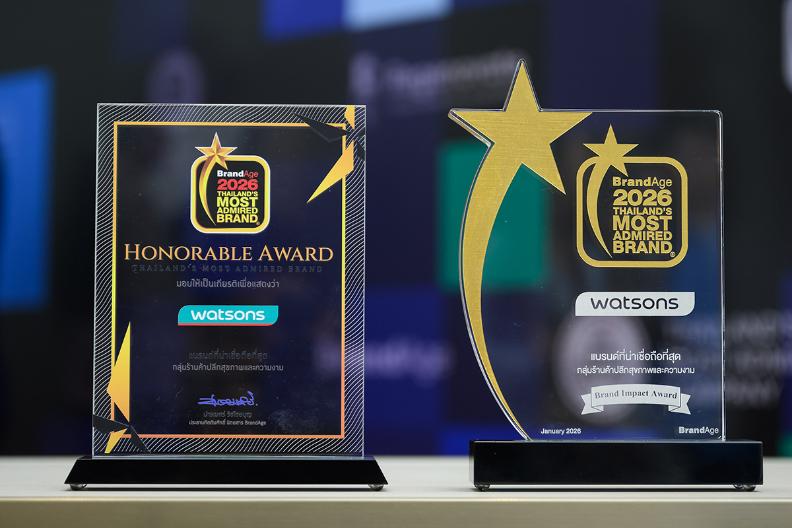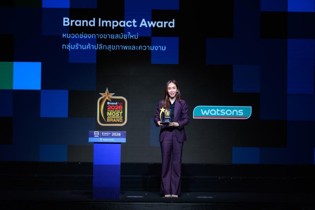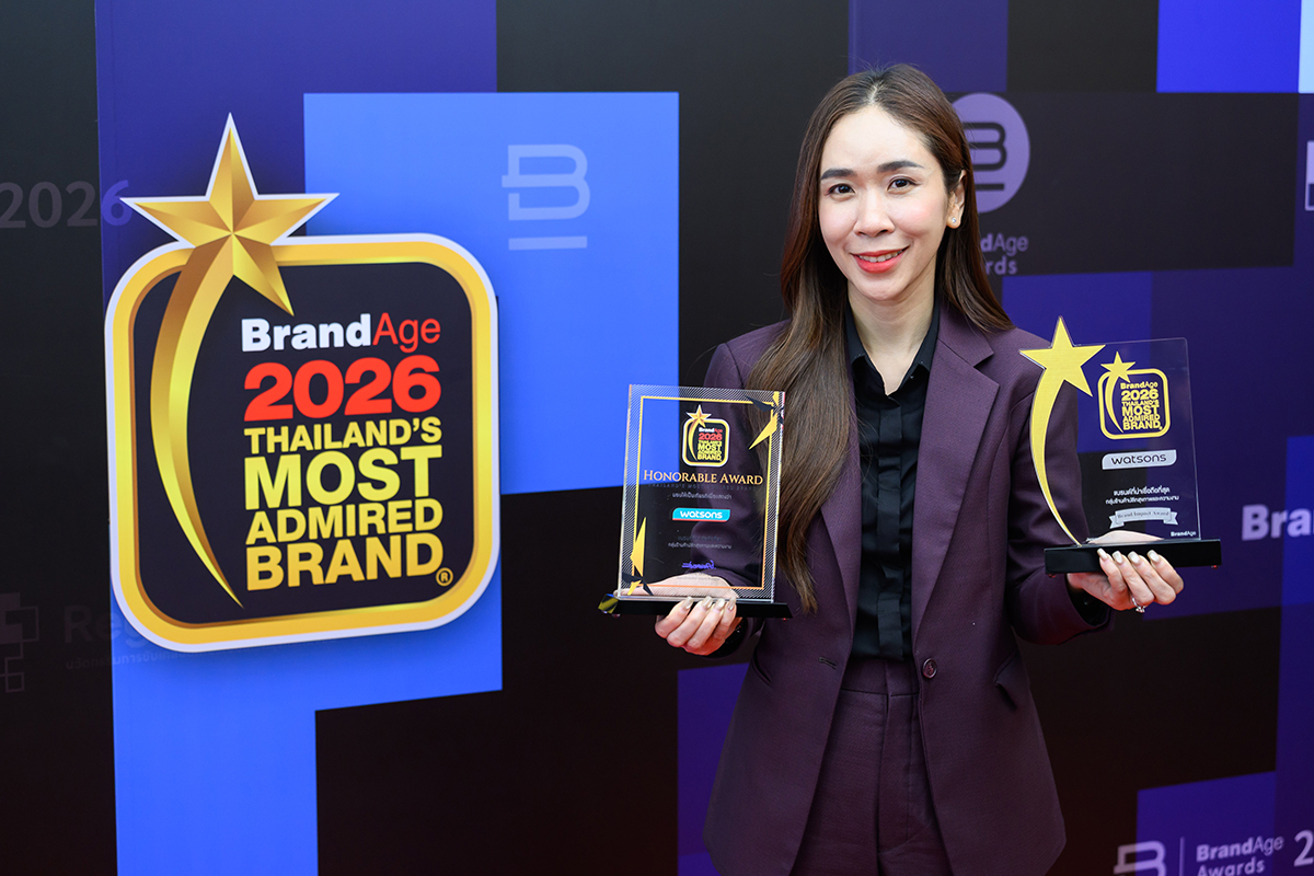 วัตสัน ประเทศไทย ผู้นำร้านเพื่อสุขภาพและความงามอันดับหนึ่งของประเทศ ตอกย้ำความเป็นผู้นำตลาดที่ได้รับความเชื่อมั่นจากผู้บริโภคทั่วประเทศ ประกาศความสำเร็จคว้า 2 รางวัลอันทรงเกียรติจากเวที “2026 Thailand’s Most Admired Brand” ซึ่งจัดโดยนิตยสาร BrandAge โดยครองแชมป์อันดับ 1 ในหมวดหมู่ “ช่องทางขายสมัยใหม่” กลุ่ม “ร้านค้าปลีกสุขภาพและความงาม” พร้อมรับรางวัลพิเศษ Brand Impact Award จากความโดดเด่นด้านการตลาดและการส่งเสริมการตลาด สะท้อนศักยภาพและความแข็งแกร่งของวัตสันที่เข้าถึงผู้บริโภค พร้อมสร้างผลกระทบเชิงบวกให้กับอุตสาหกรรมค้าปลีกไทยอย่างต่อเนื่อง